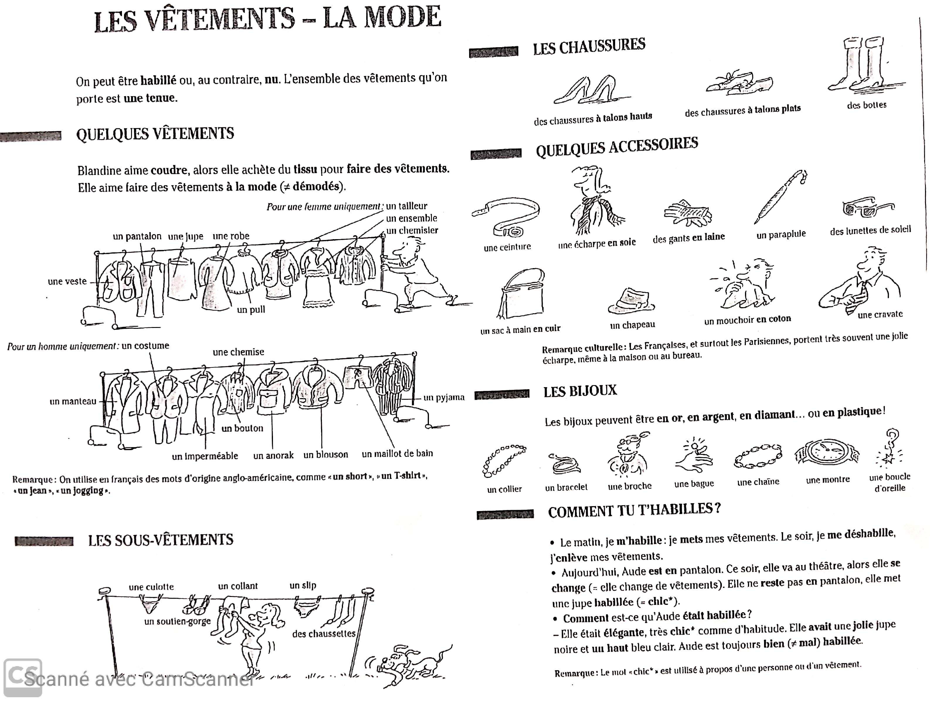 a. Vocabulaire : Observe et mémorise un maximum de mots de vocabulaire concernant les vêtements.