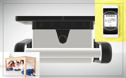 PANDAは、気象庁が提供するEEW(緊急地震速報)によって作動します。地震の大きな揺れ(主要動S波)が到達する前に収納扉をロックするので、収納物が落下して壊れたり、落下物に当たってケガをしたりすることを防止します。そして、危険物が床に散乱することを防ぎ、避難経路を確保することで、安全かつ迅速な避難行動をサポートします。