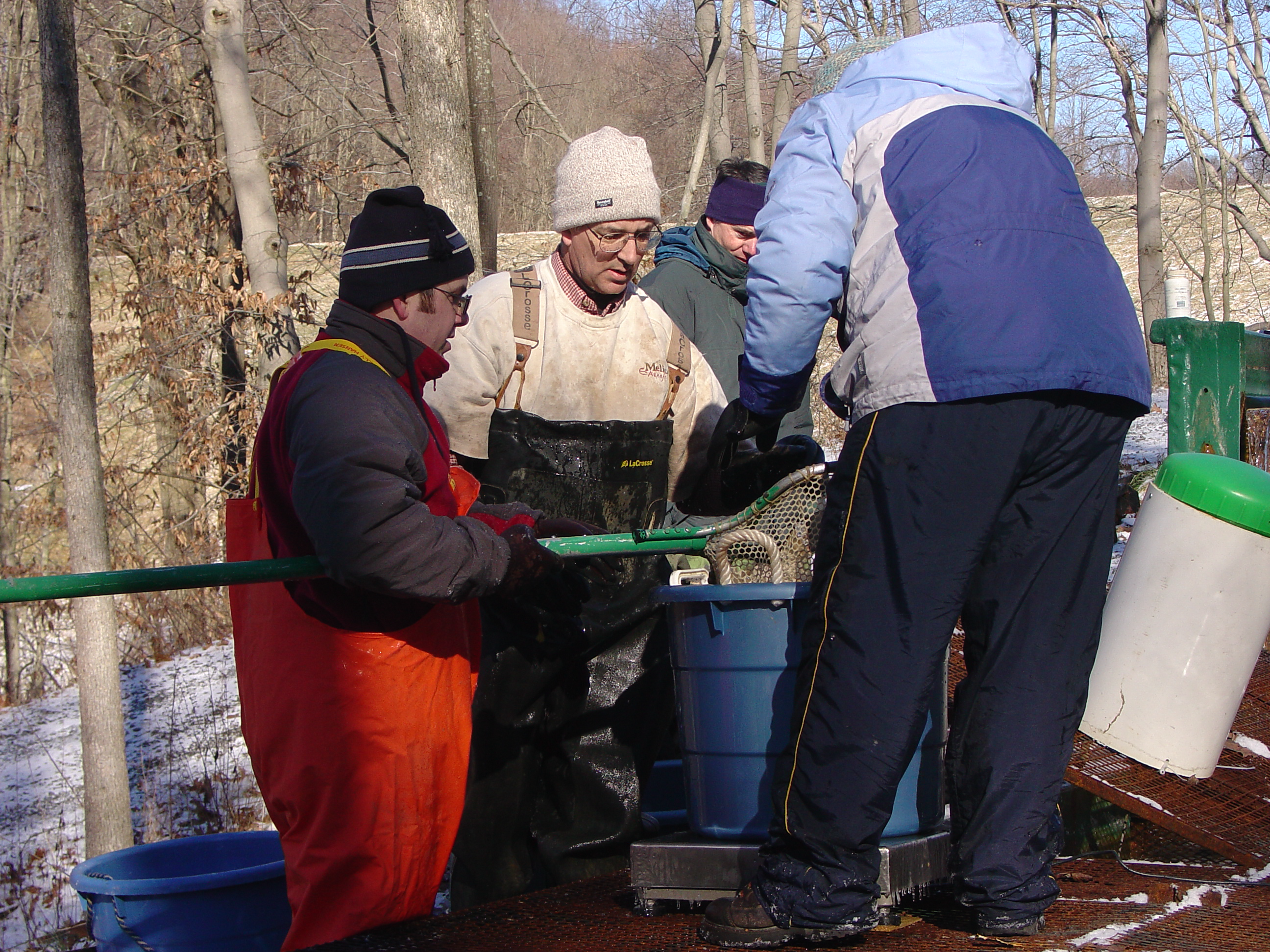 I've also done work to develop underutilized water resources to support rural economic development. For example, in the mid-Appalachian region, millions of gallons of acidic water are treated and released each day into local streams and rivers. Contributing to an initiative started by my friend and colleague, Dr. Ken Semmens, we demonstrated the safety of using treated mine water to rear edible fish such as rainbow trout, steelhead trout, and hybrid striped bass. This work ranged from bioassays and basic water chemistry to the design and operation of a [small] commercial-scale modular flow-through aquaculture system that is used by students and faculty in animal science, food science, environmental engineering, chemical engineering, fisheries management, and others at West Virginia University. The system has also been used by extension specialists to demonstrate the opportunities to utilize treated mine water for aquaculture. If you'd like to learn more about this project, click here.