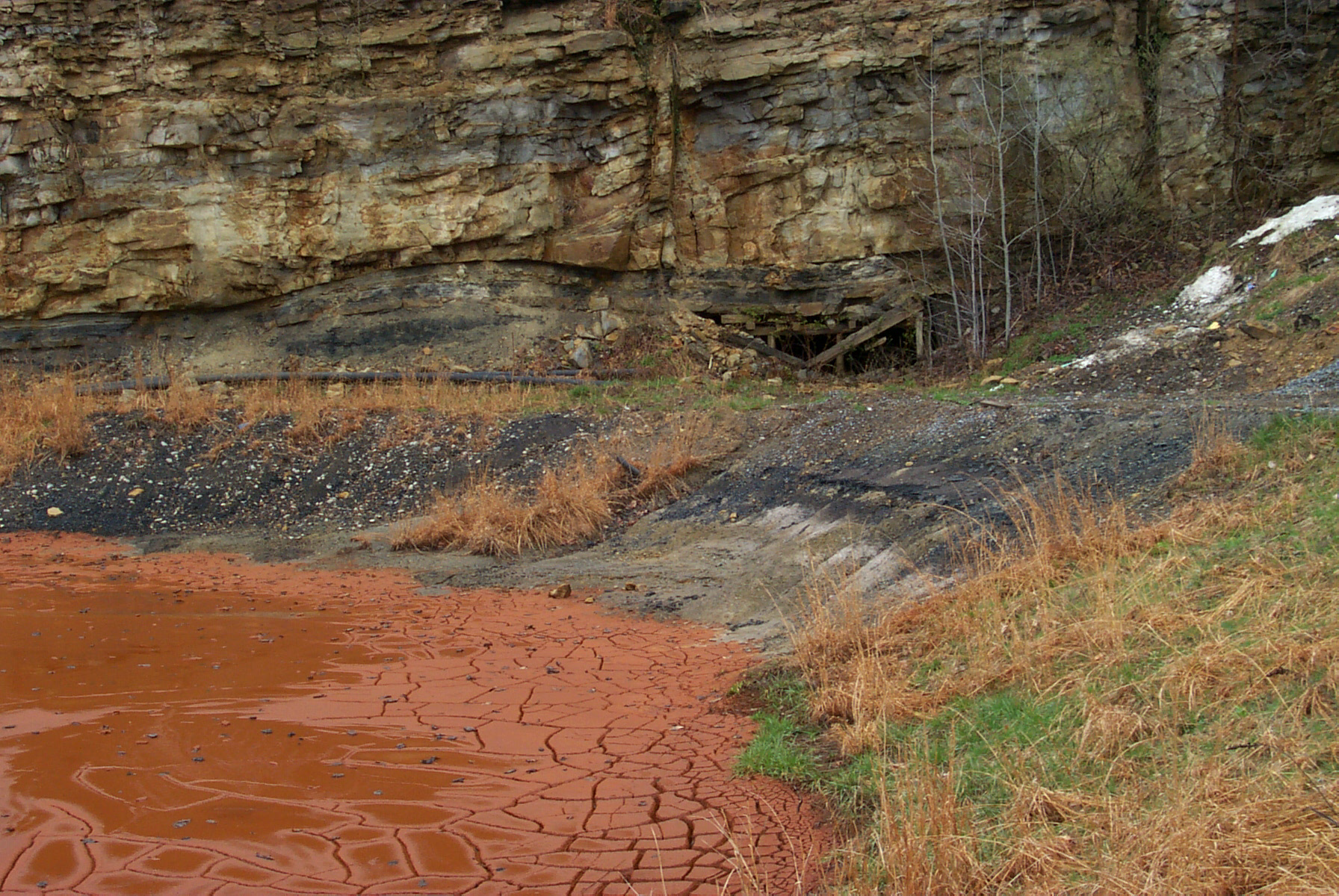 We're also working at an adjacent site that contains an abandoned sand quarry. From the 1940s through the late 1960s, iron foundry slag was disposed of on the shore of this small lake. Some of the slag was covered with soil while other slag deposits have remained exposed to the atmosphere. Since iron foundry slag is known to contain elevated concentrations of iron, as well as cadmium, copper, nickel, lead, and zinc, we've been studying the ways metals partition into environmental compartments. This includes studies of surface and groundwater, sediment, soils, slag, and aquatic and terrestrial vegetation.