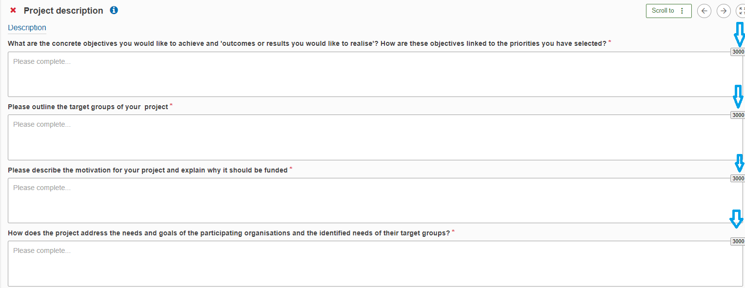 Nakon odabira prioriteta, možete krenuti u detaljniju razradu vaše projektne ideje u dijelu Project description. Projekt je potrebno dobro opisati kako bi ocjenjivači dobili jasnu sliku postavljenih ciljeva i željenih rezultata.