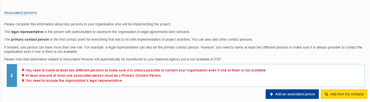 Organizacija se može prijaviti samo jednom po roku u samo jednom od navedenih područja: SCH, VET, ADU i YOU, a ista organizacija (isti OID) može sudjelovati u najviše 5 prijava ukupno po roku, bilo kao prijavitelj ili partner.
