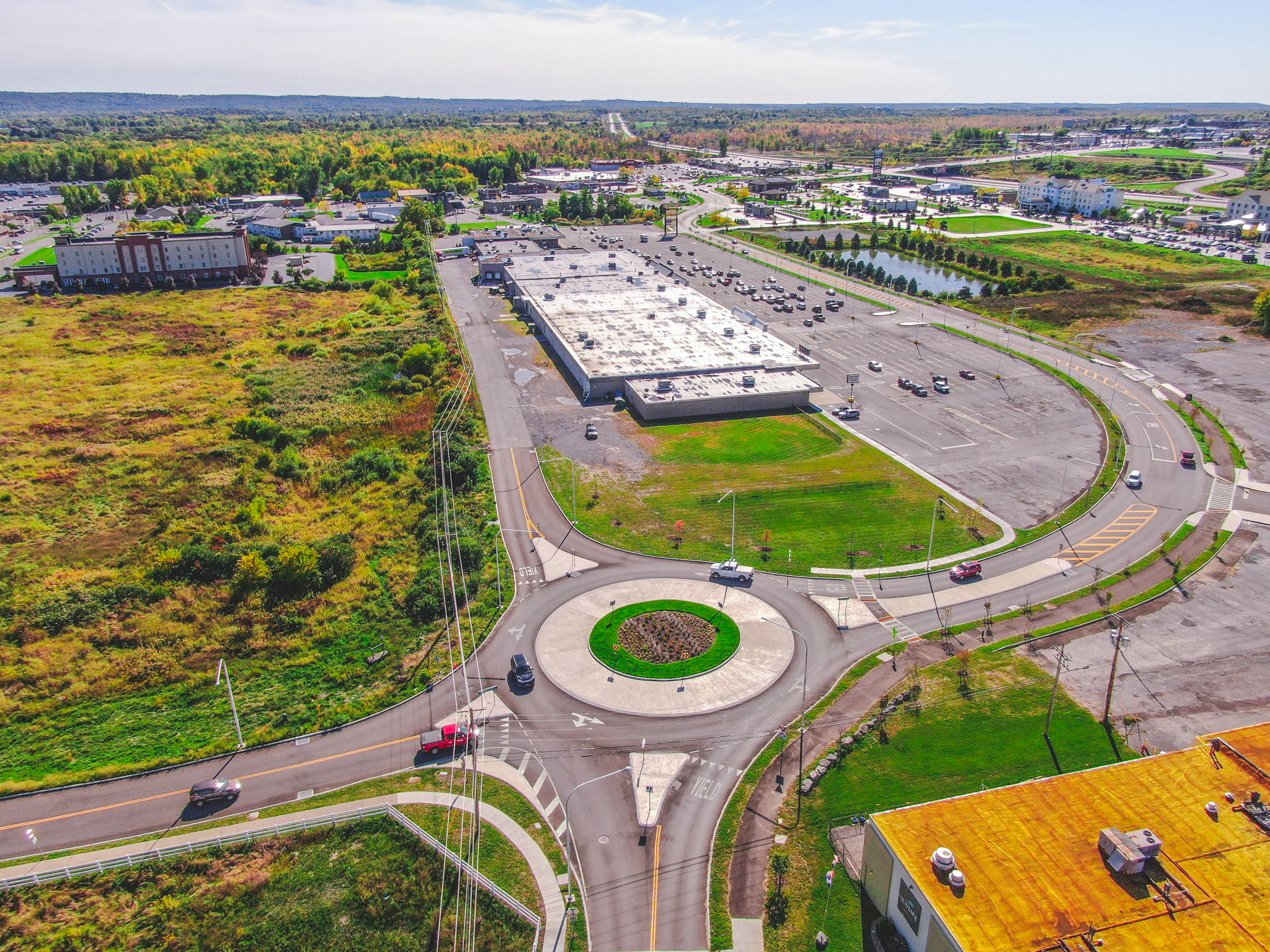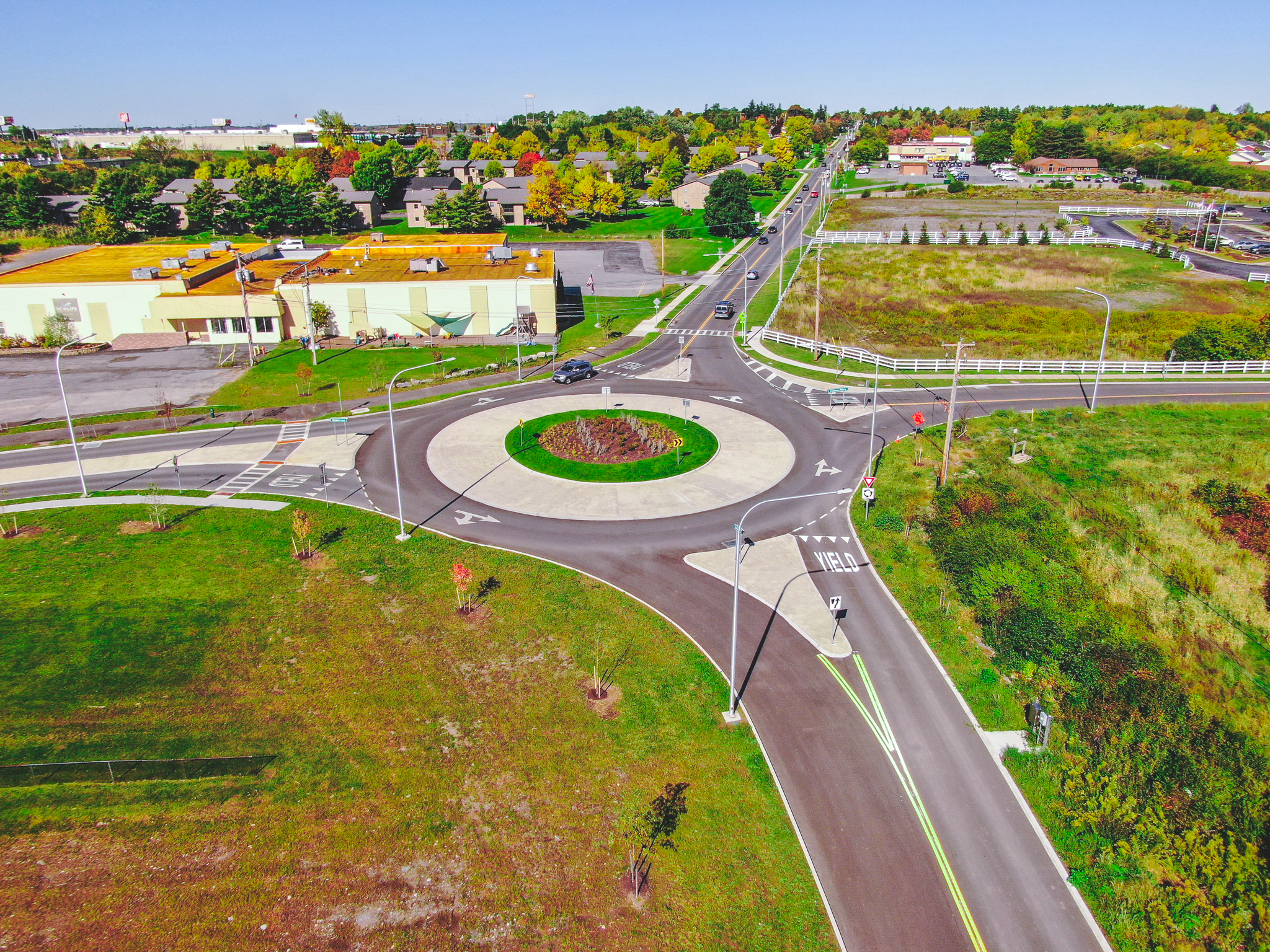 The Western Boulevard Construction Project constructed a new connector road from the Western Boulevard entrance road into Stateway Plaza to the Gaffney Drive intersection. This corridor is now a public thoroughfare, has improved access to existing commercial properties and increased future economic growth opportunities. Western Boulevard, once a wide-open “sea of asphalt" was designed to accommodate vehicle, bicycle, and pedestrian traffic. A single-lane modern roundabout replaced the existing stop controlled Gaffney Drive intersection allowing for safe and efficient multi-modal traffic flow.