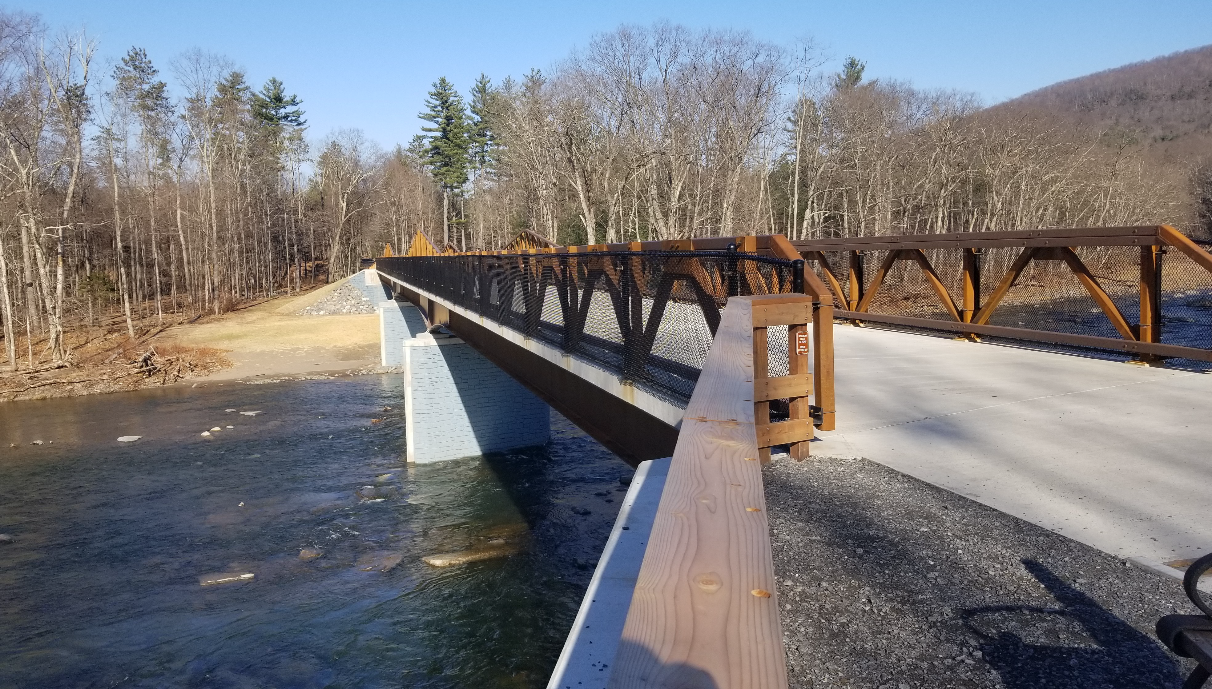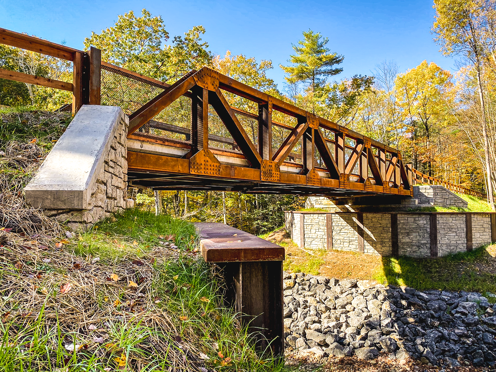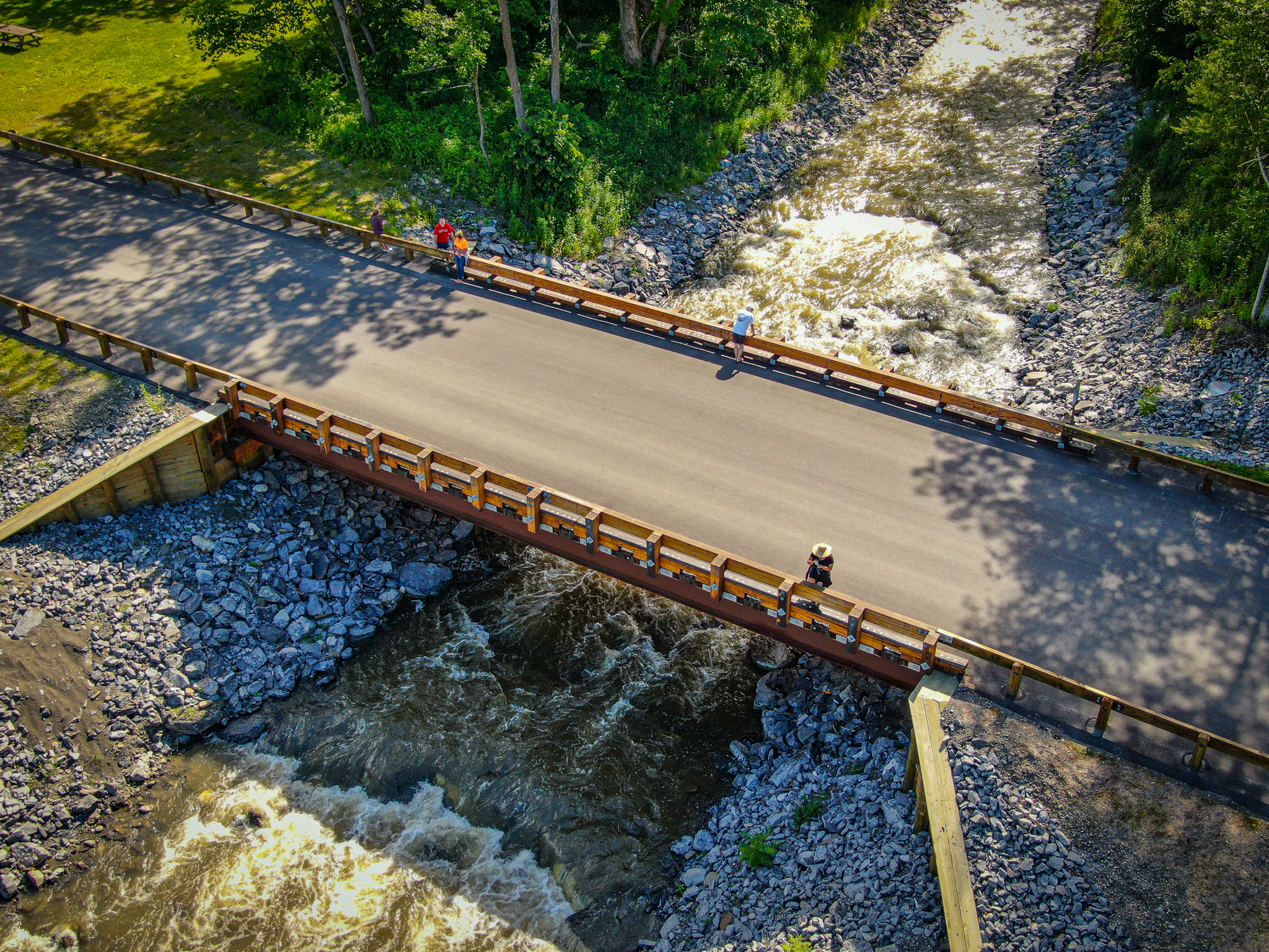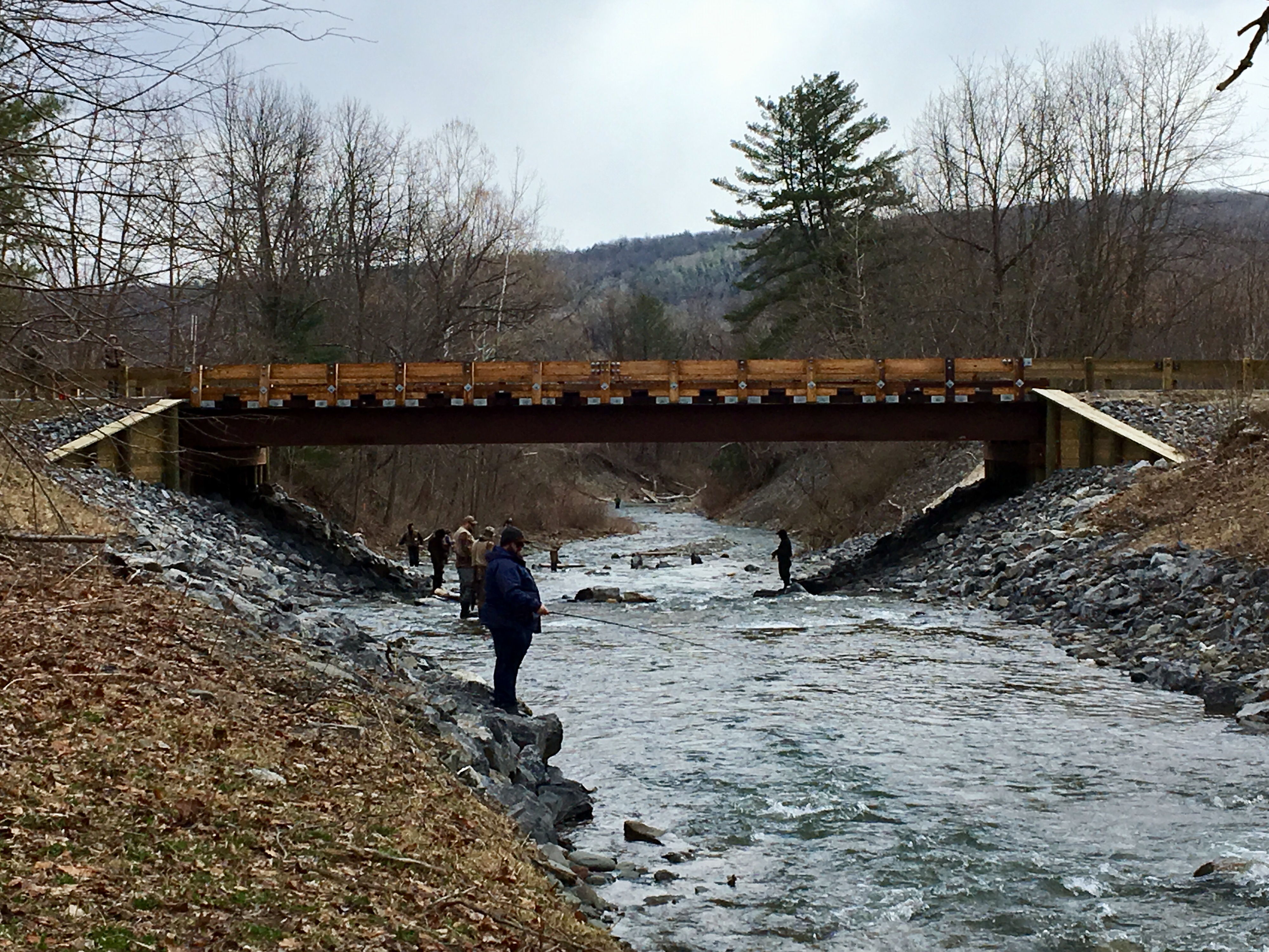 Robert H. Treman State Park’s existing 114-foot long fordway crossing of Enfield Creek was replaced by a single span bridge structure that provided improved access for vehicles, pedestrians, and cyclists. Aside from allowing year-round access across the creek, removal of the fordway also allowed for the stabilization of the channel and bed of Enfield Creek upstream and downstream of the bridge. The natural valley slope was restored through the 380-foot stretch of Enfield Creek; this returned aquatic organism passage to the reach and enhanced the aquatic habitat.
