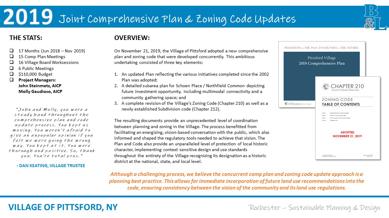 B&L’s Community Planners guided the Village of Pittsford on an updated comprehensive plan while concurrently revising the Village’s zoning codes.