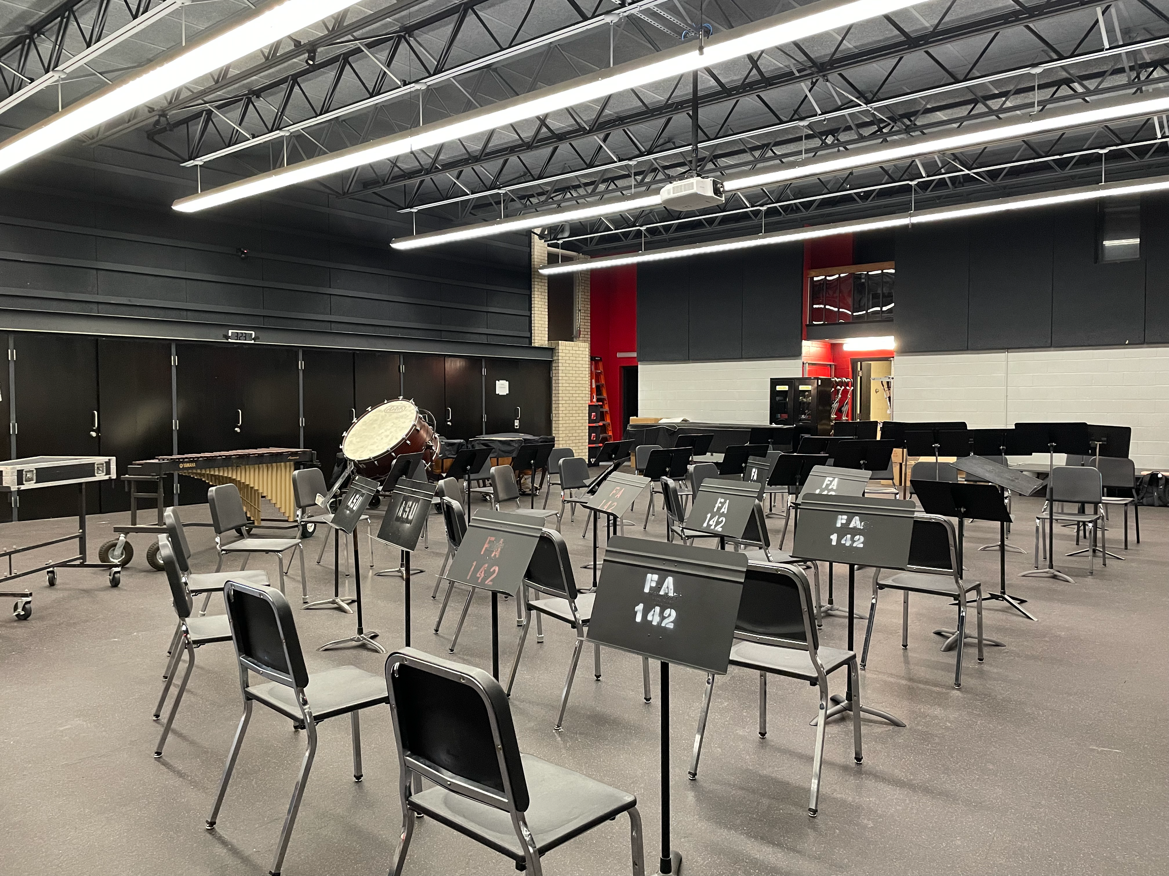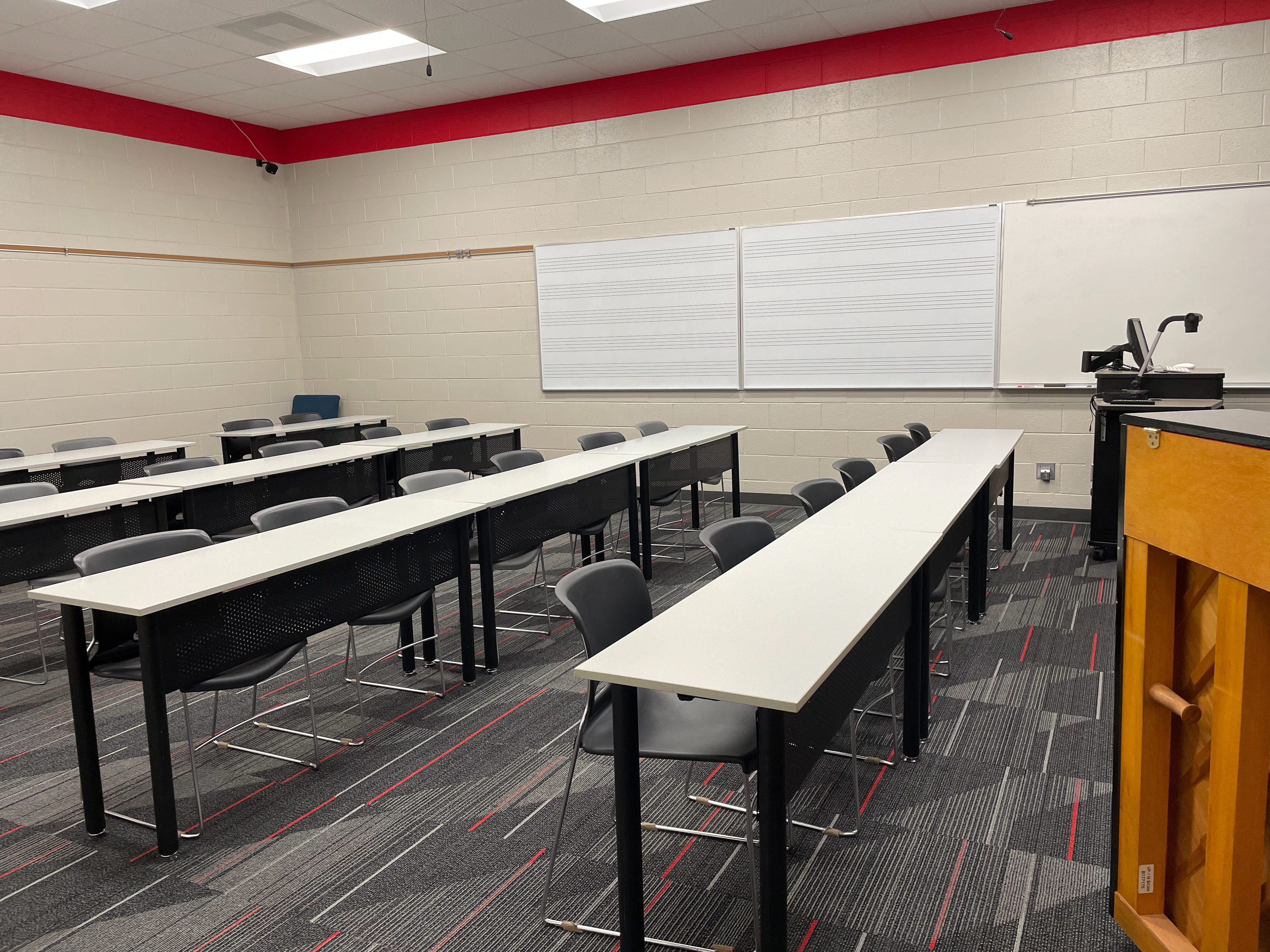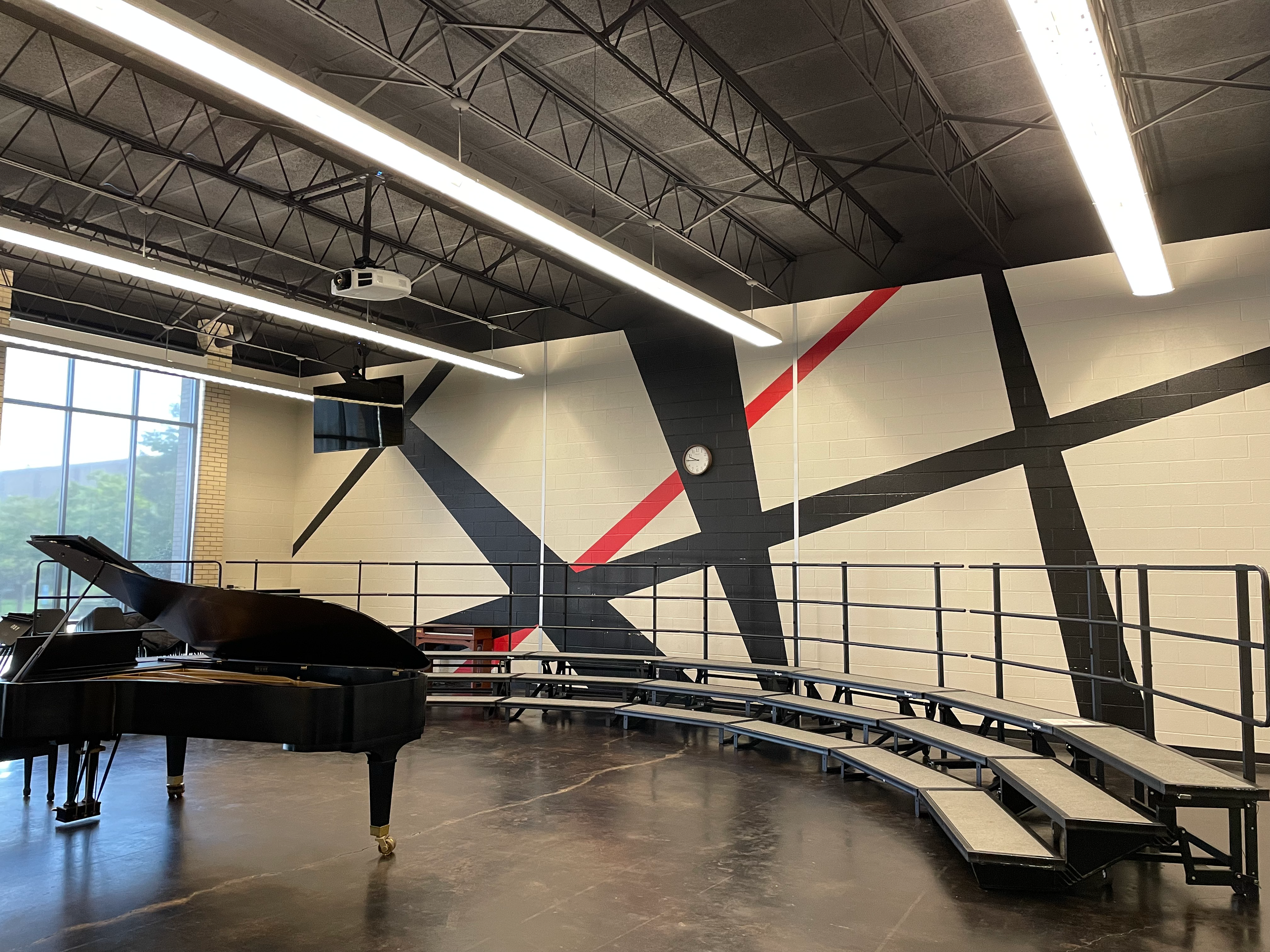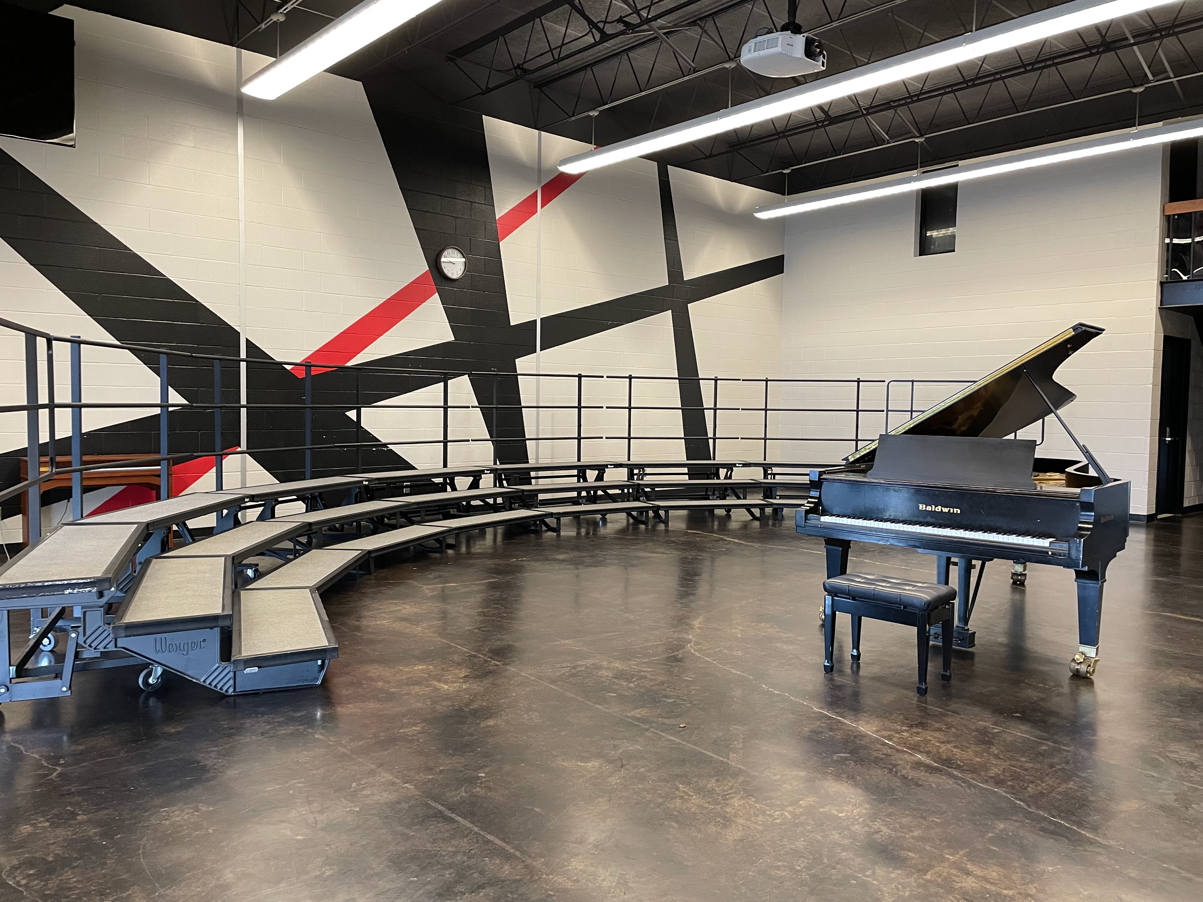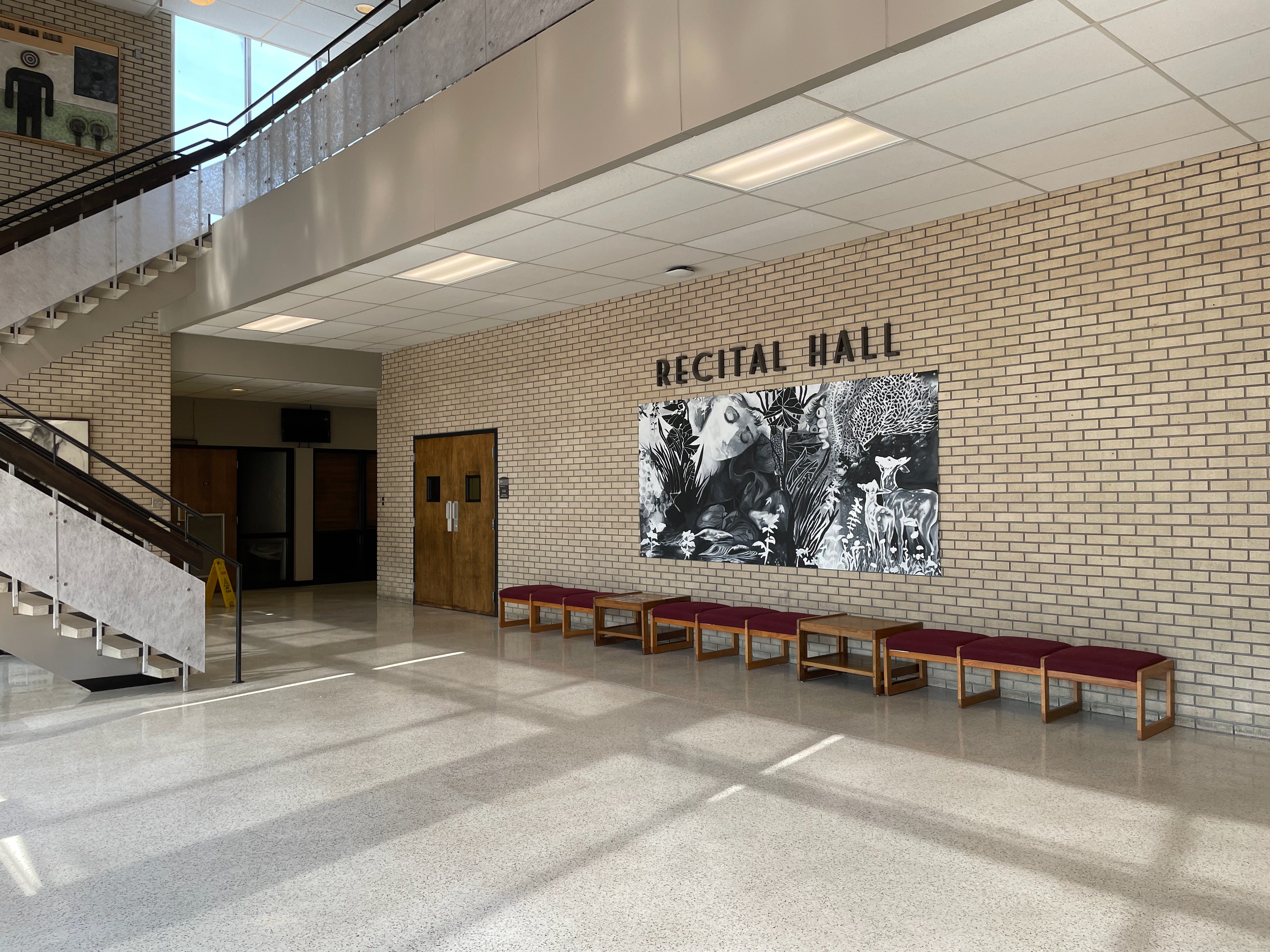 The Fine Arts Center is the hub of musical activity for students on campus. The building houses all faculty offices, classrooms, practice rooms, rehearsal spaces, and a recital hall. Students can be found hanging out on The Lobby Steps in between classes and rehearsals.