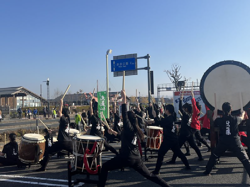 ステッカーや鈴、メガホン等の応援グッズをいただき、応援にも力を入れました。ランナーの中には部員たちに向かって手を振って下さる方や、励ましの声をかけて下さる方もたくさんおり、太鼓を打つ我々の励みにもなりました。