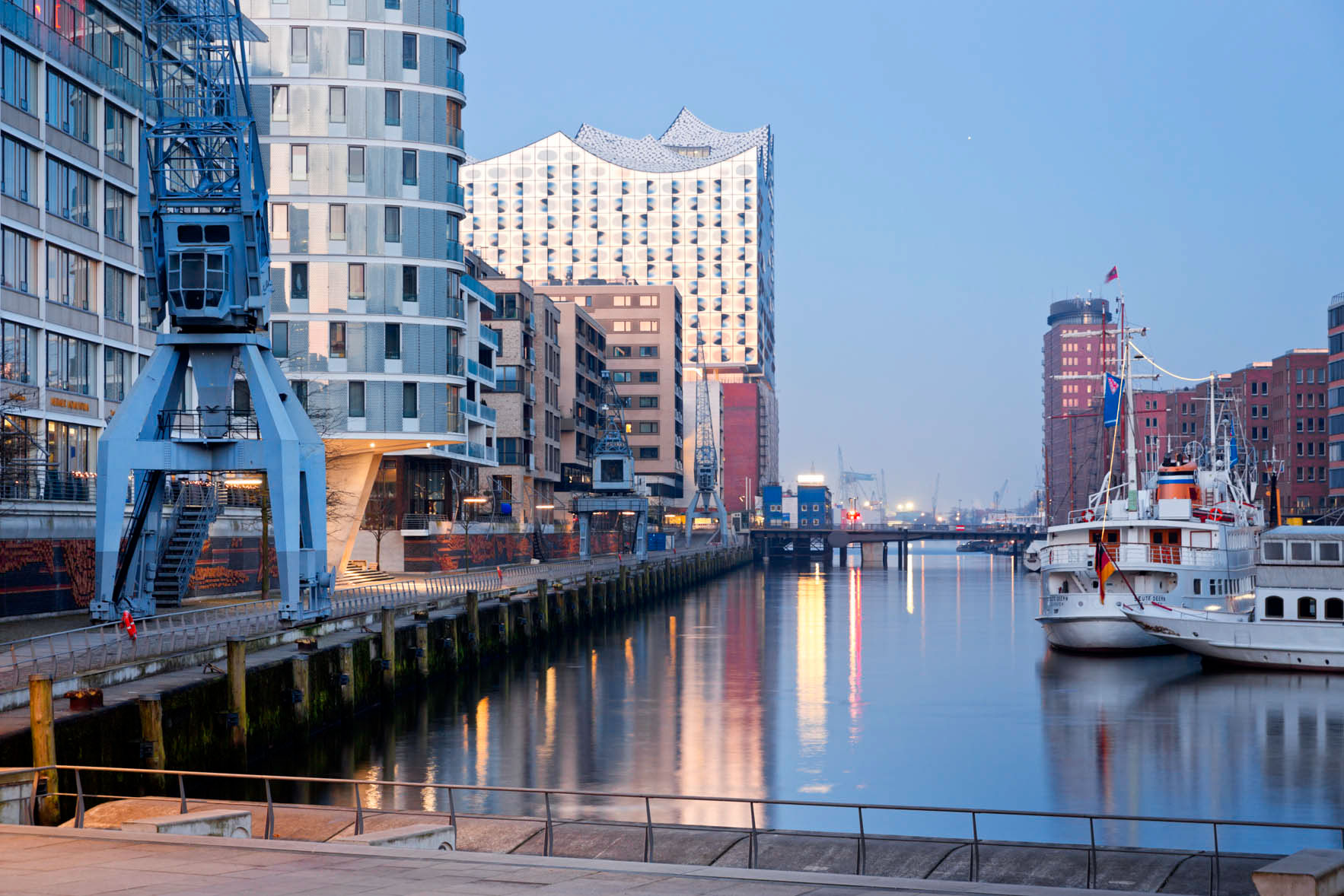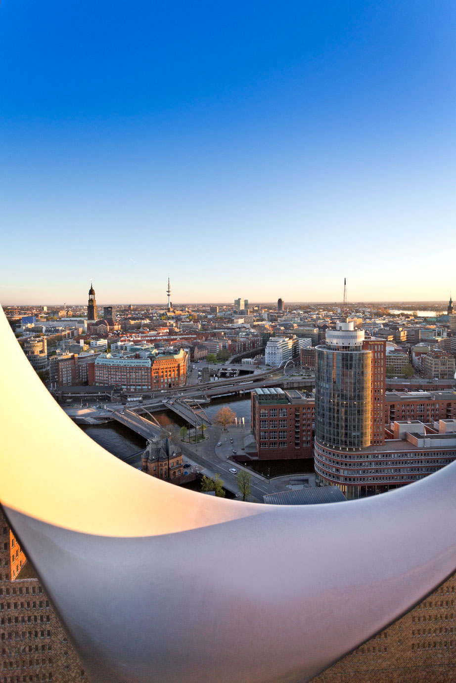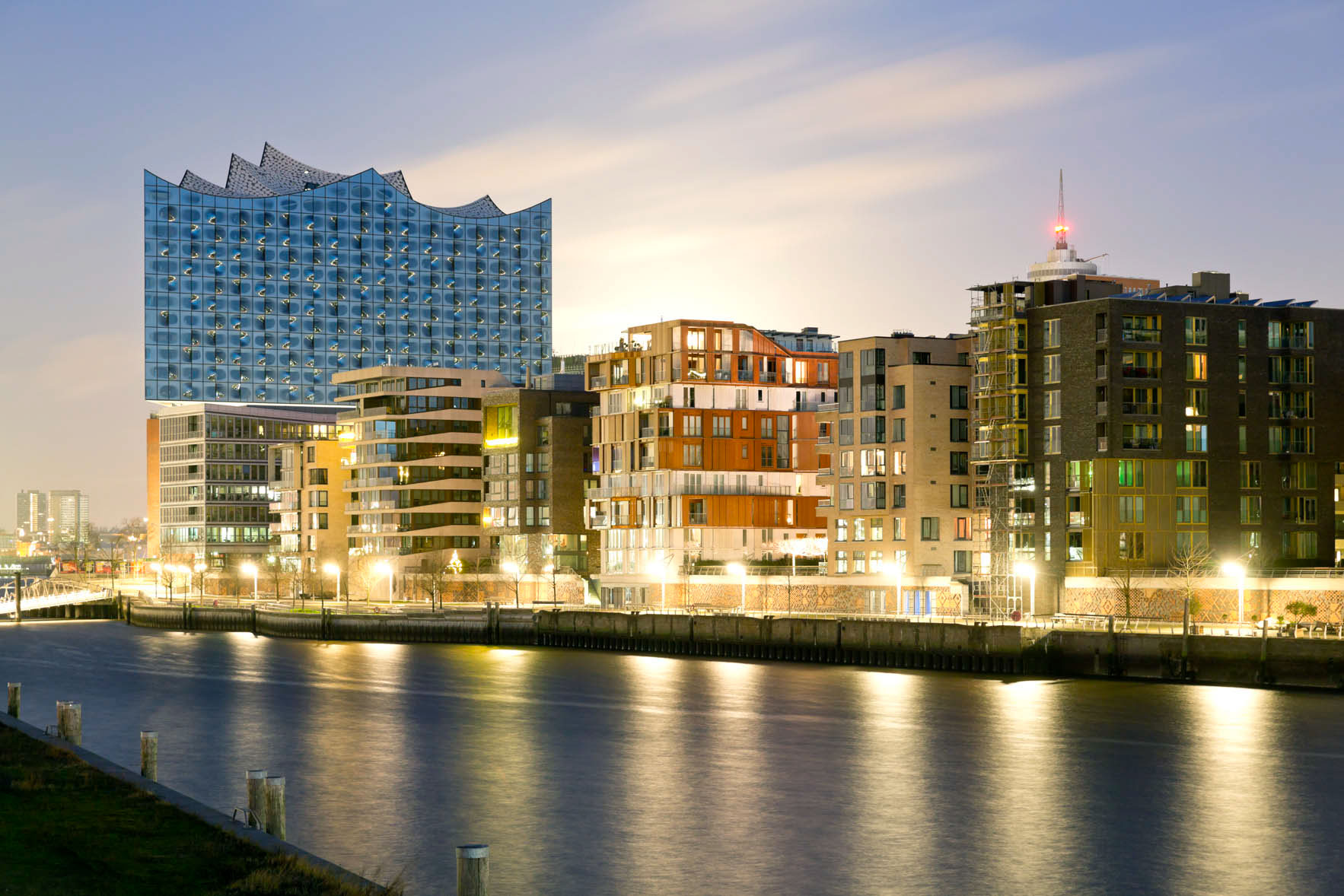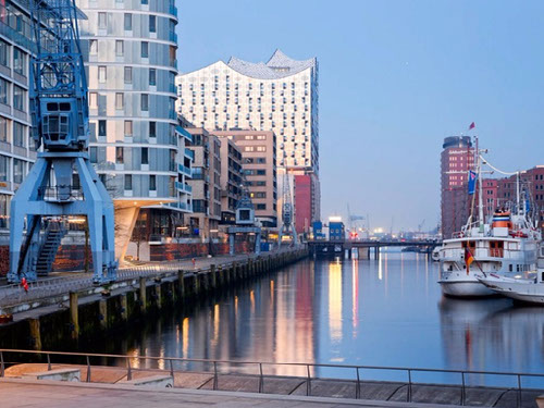 The most remarkable building in the new HafenCity is obviously the Elbphilharmonie. It is set on the old warehouse Kaispeicher. The new building includes three concert halls, a hotel, apartments and a plaza in 37 meters hight.