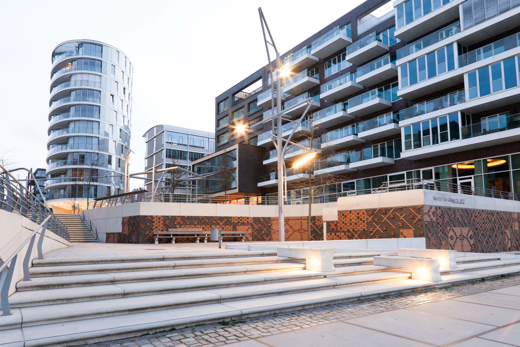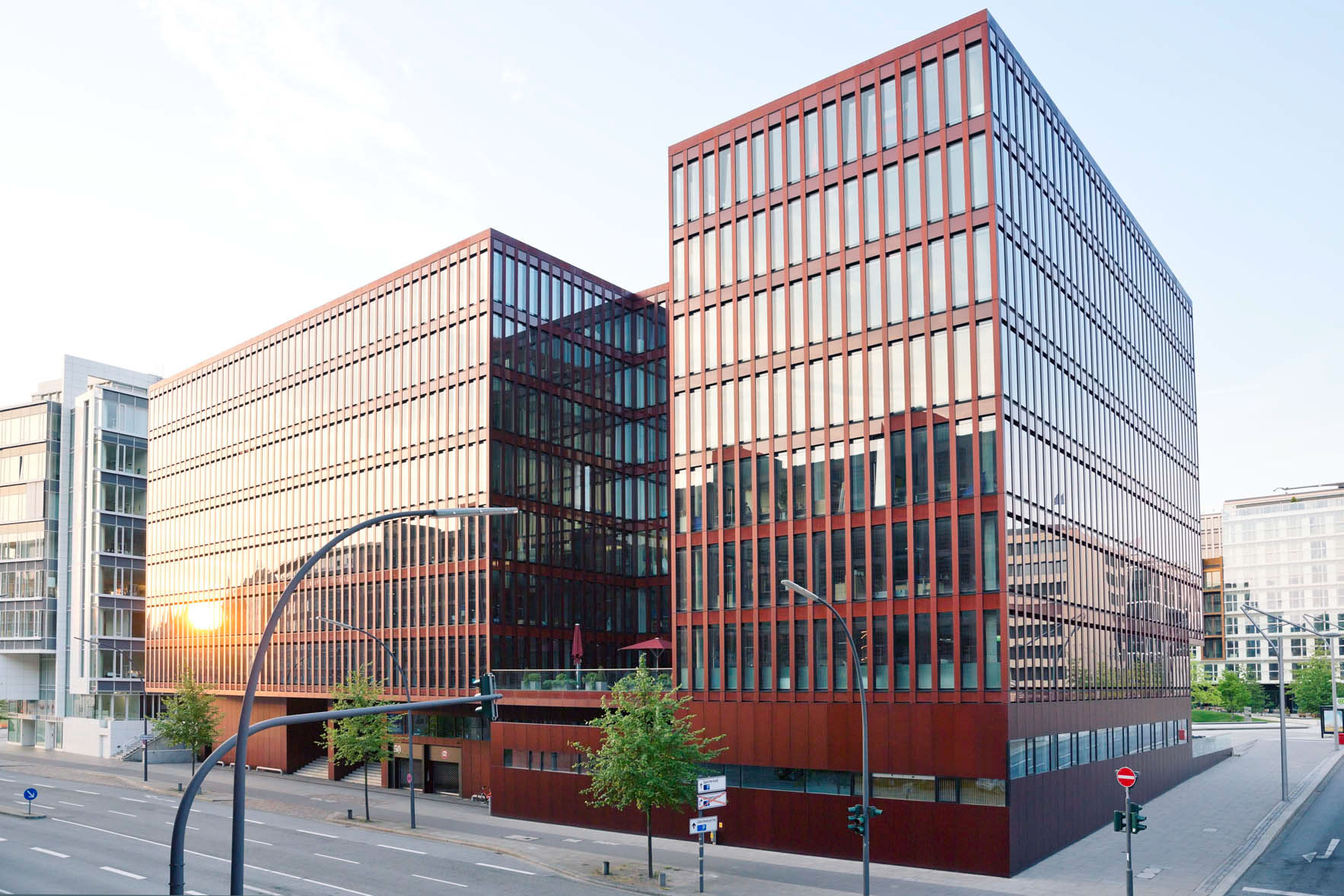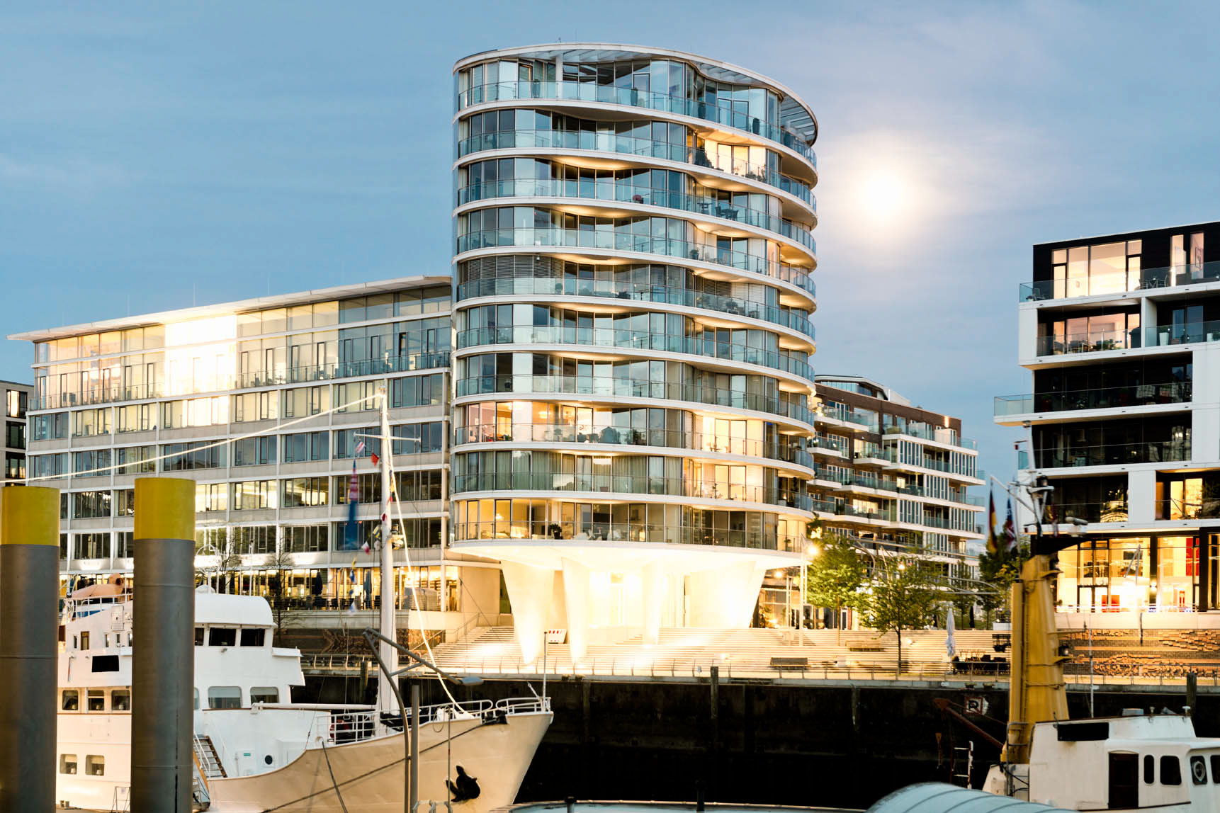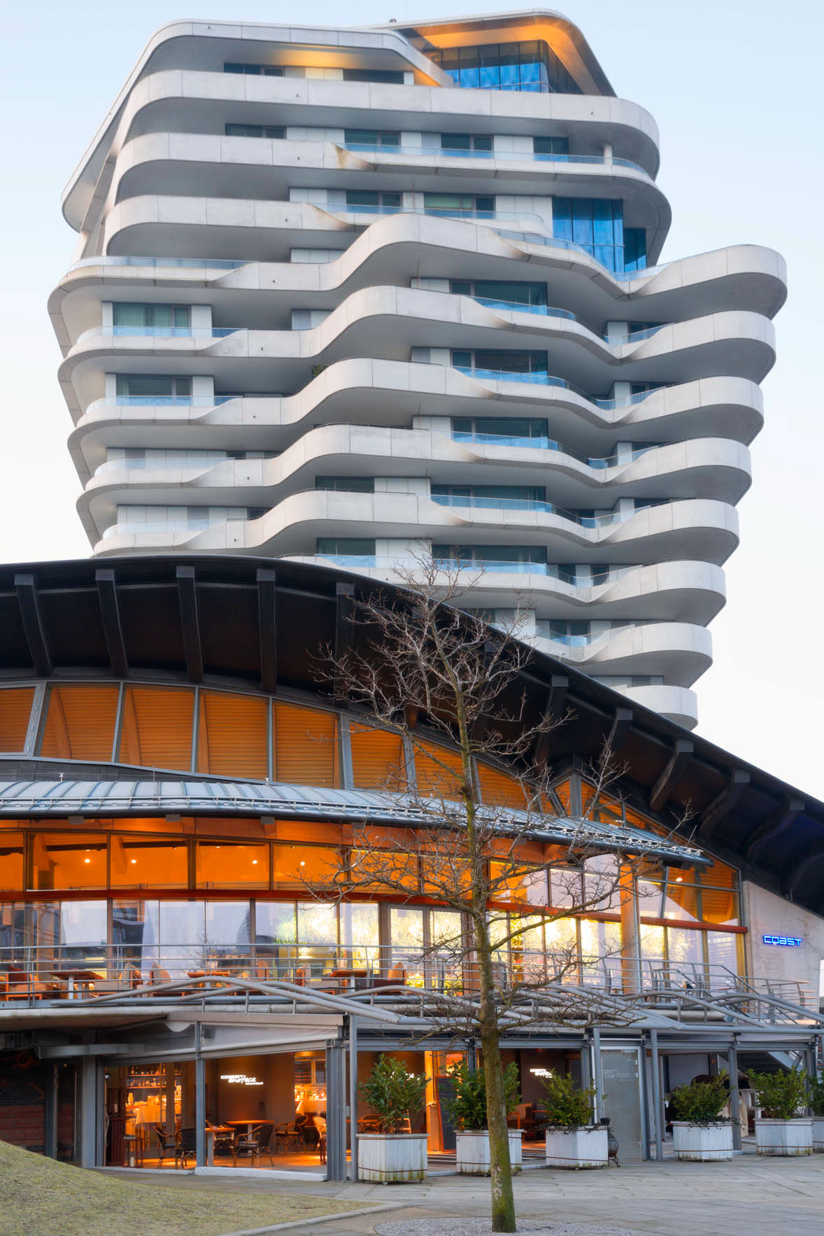 Another distinctive architectural design are the Unilever house and the Marco Polo Tower. The 17 storeys building stands in front of the Unilever building. Both are designed by Behnisch architects from Stuttgart.