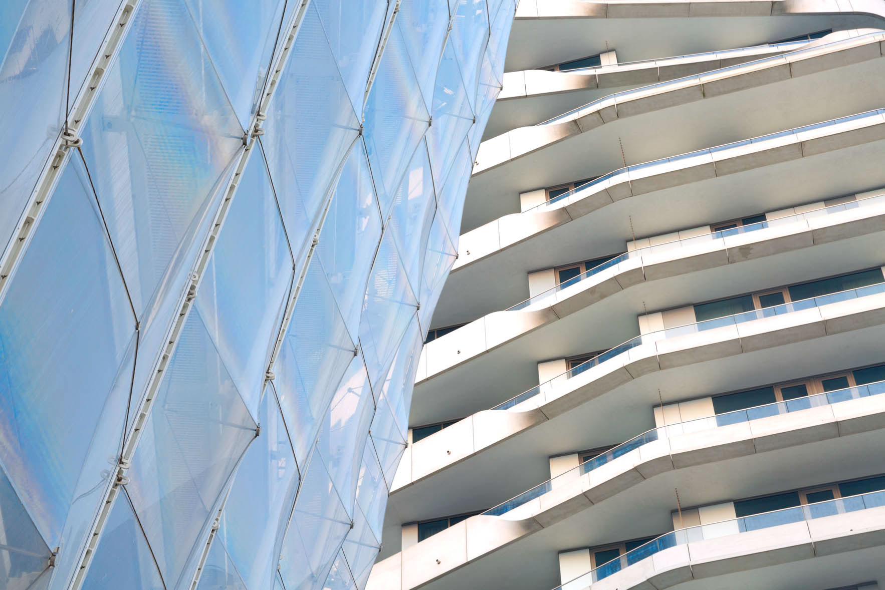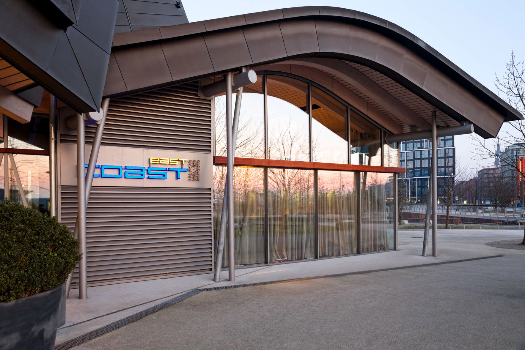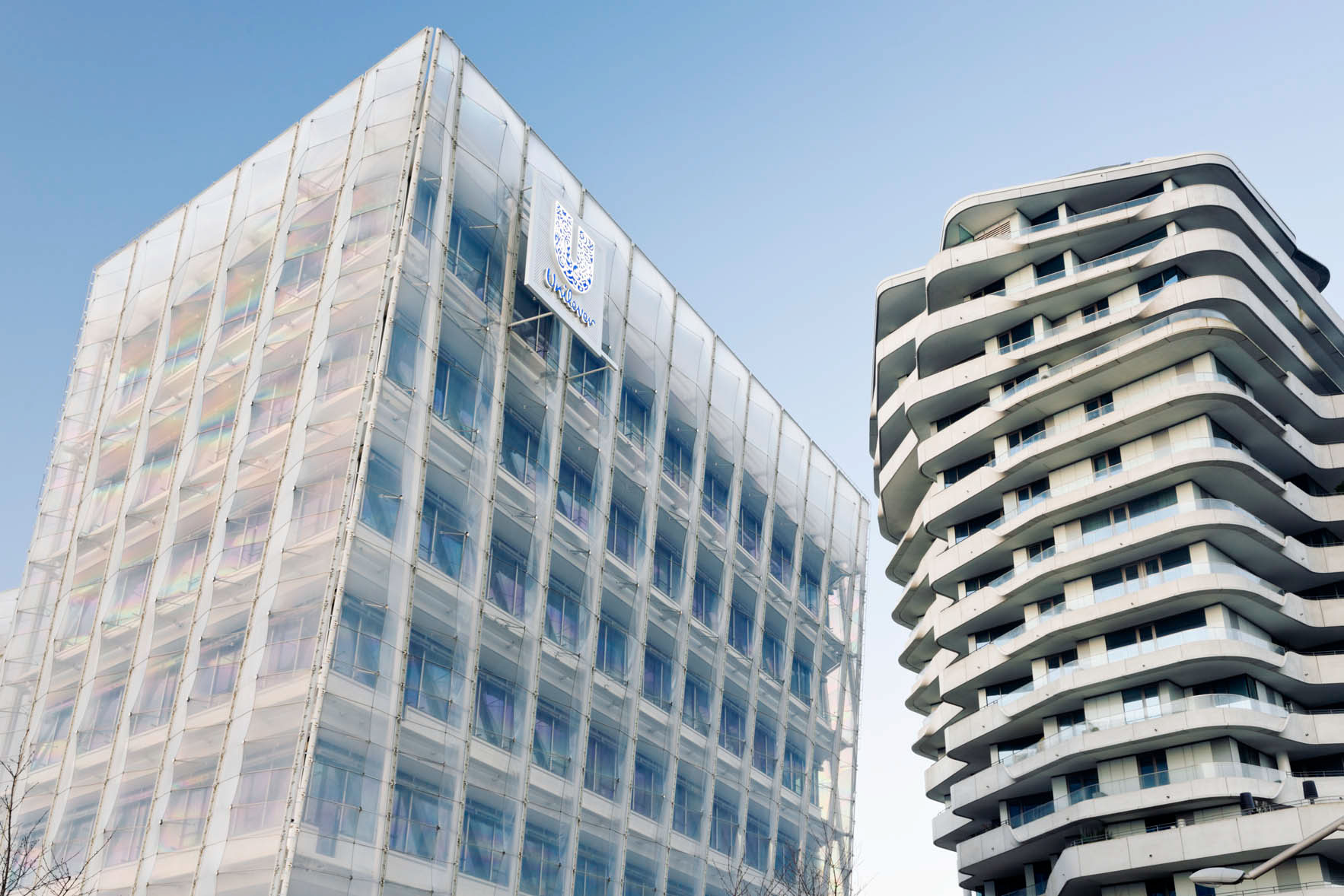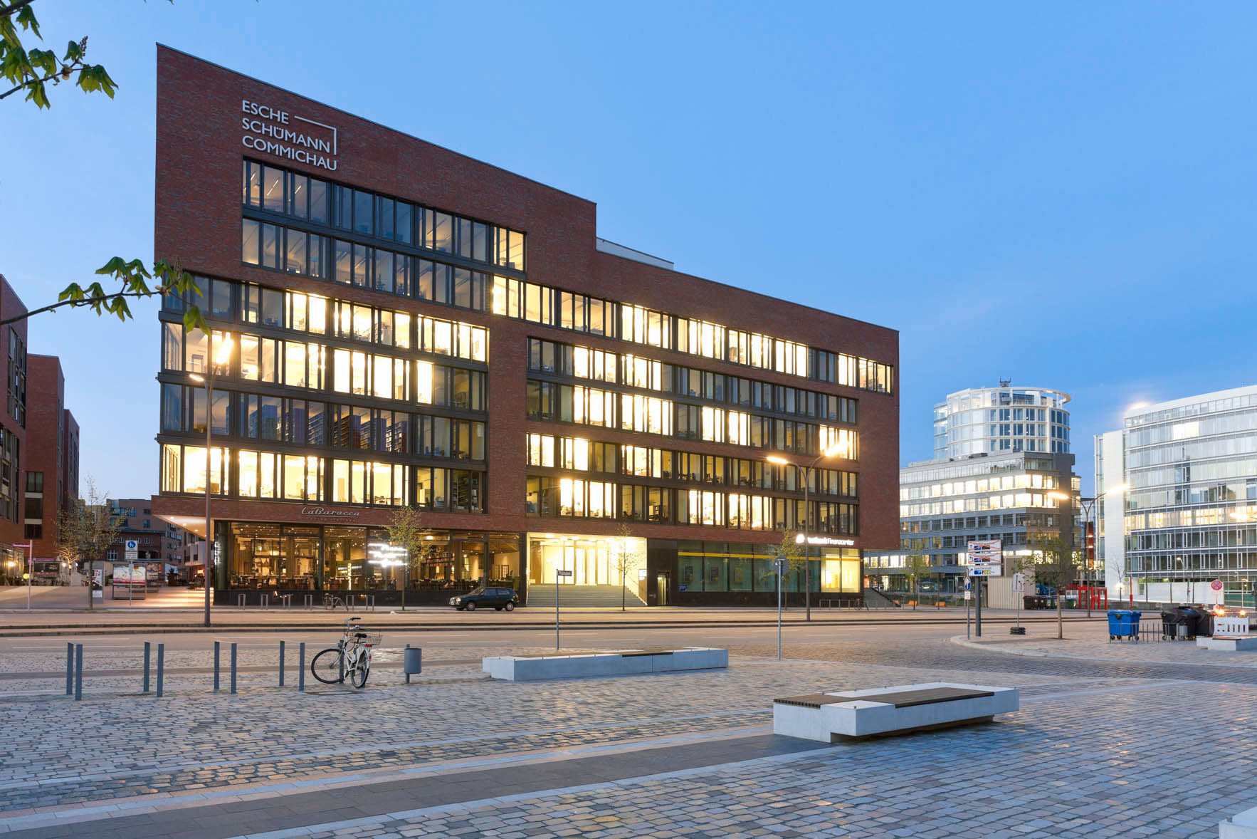 Another distinctive architectural design are the Unilever house and the Marco Polo Tower. The 17 storeys building stands in front of the Unilever building. Both are designed by Behnisch architects from Stuttgart.