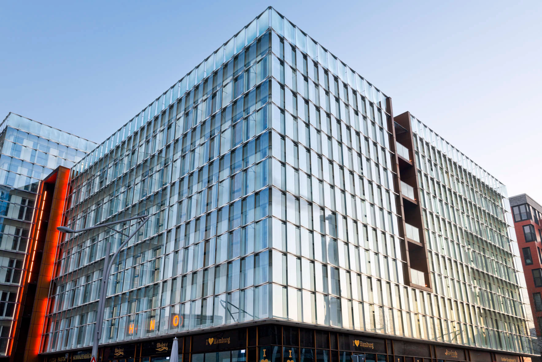 Another building I like very much is the Sumatrakontor, located at Überseeboulevard. The pedestrian walkway leads right into a shopping area with restaurants and cafés. The building accommodate apartments and offices. Its attractive design comes from the Rotterdam based Erick van Egeraat associated architects