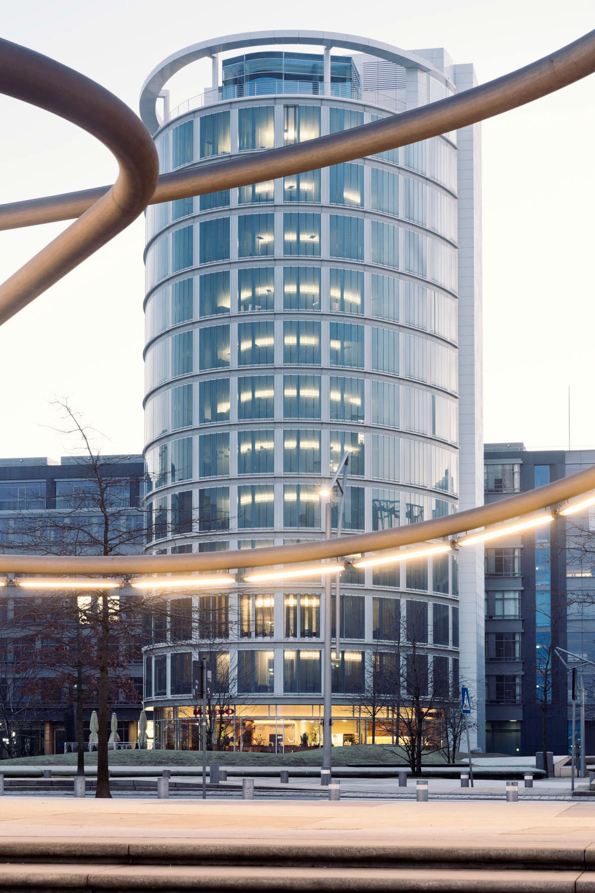 The turned levels of the tower lat him look like a sculpture. The project won prices such as Green Good Design Award, MIPIM Award Category Residential Development or the European Prime Property Award "Best high-rise development Germany"