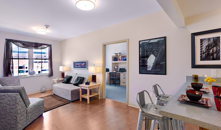 - The University Heights College Suites provides students with the best on-campus housing in the area. Our fully furnished suites include private bedrooms, full kitchens, shared lounge areas, laundry, and fitness centers. Key fobs and our Public Safety officers work hand and hand to provide a safe residential experience.