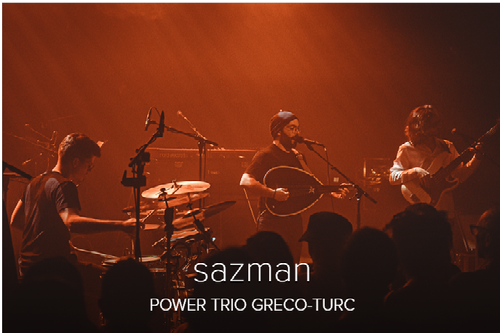 Sazman c’est le périple fou d’un oud électrique, d’une basse, d’une batterie et d’une voix saturée, embarqués à bord d’un ferry sur l’Adriatique et la mer Égée, puis dans une vieille golf turbo diesel sur un chemin bardé de nids de poule, de rochers intempestifs et de chèvres égarées, direction Lesbos et la Crête, en passant par la côte Turque et le Péloponnèse. Un trait d’union peu commun entre les racines de la musique Gréco-Turque et le son psychédélique des 70’s.