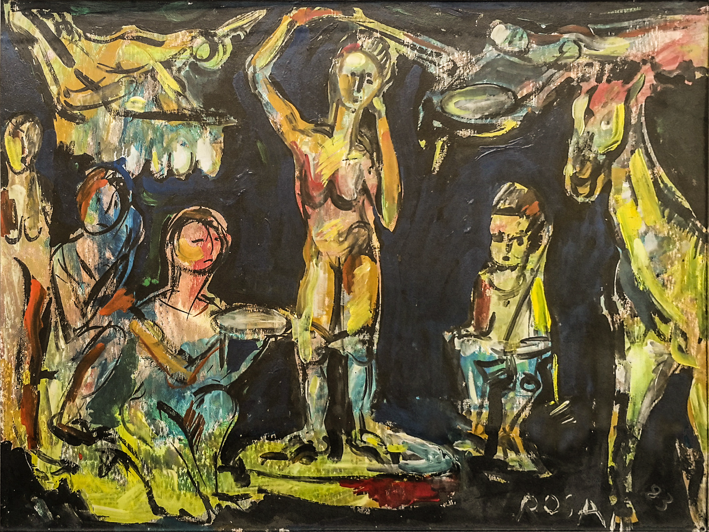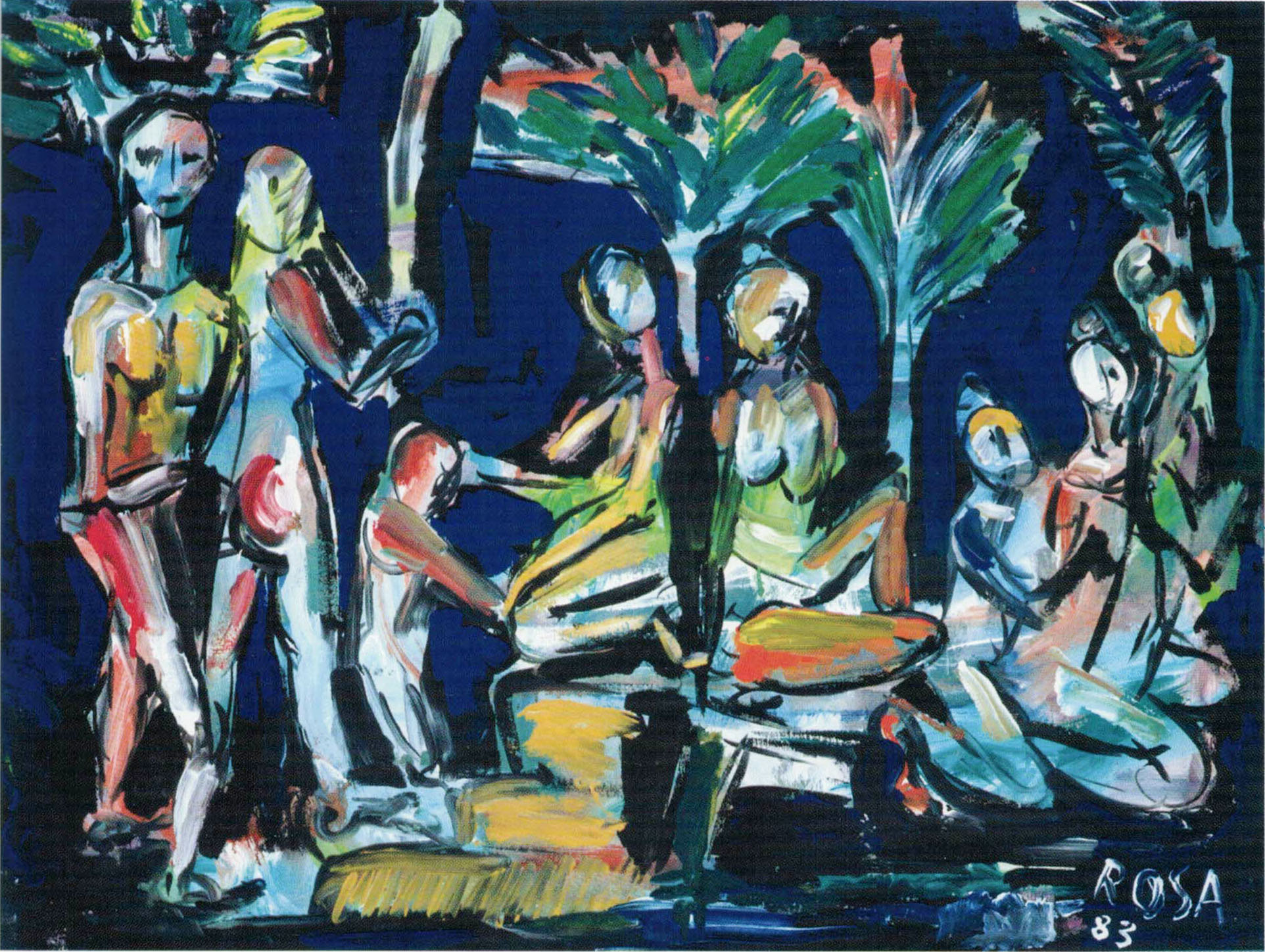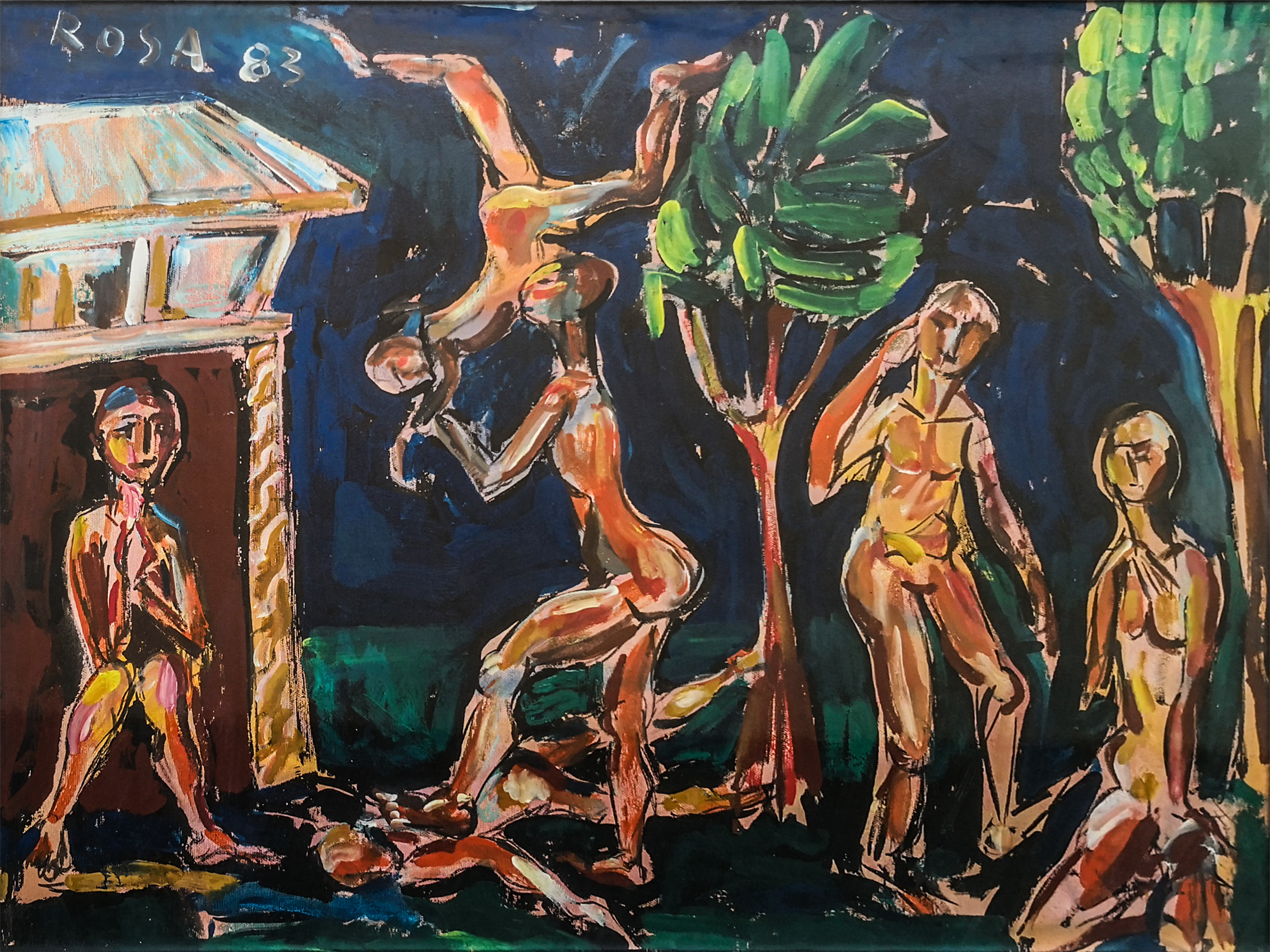Agli inizi degli anni '80 del secolo scorso risalgono le elaborazioni pittoriche che illustrano rituali esotici attinti dall'artista dal repertorio decorativo di monumenti risalenti ad antiche civiltà orientali.