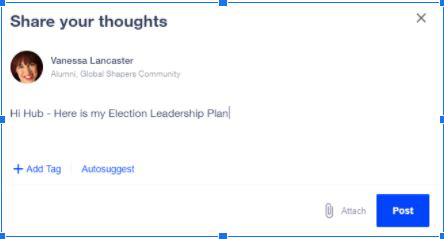 - Begin your post: "Hi, hub! Here is my election leadership plan..."