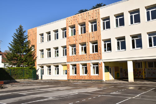 Durant l’été 2022, l’école Robert Dubois a été réhabilitée énergétiquement par l’extérieur grâce à des matériaux biosourcés (fibre de bois). En parallèle, cette même année, l’ensemble des ouvrants a été changé, assurant une isolation et limitant la perte énergétique. Les robinets des sanitaires ont également été remplacés par des éléments thermostatiques.