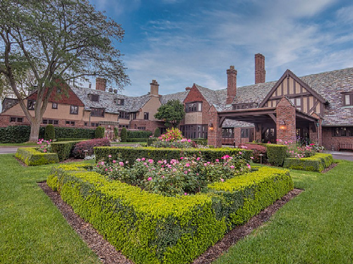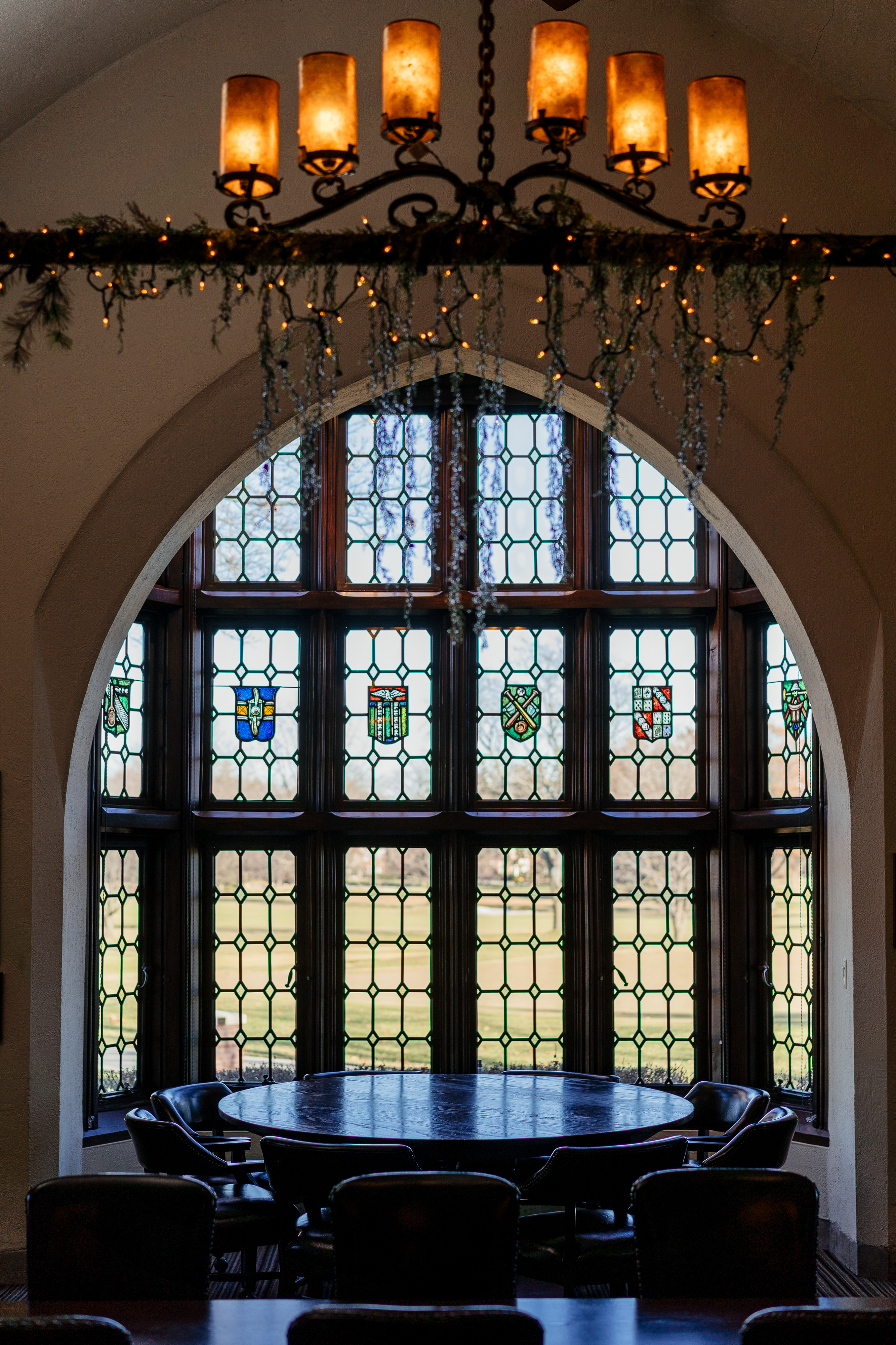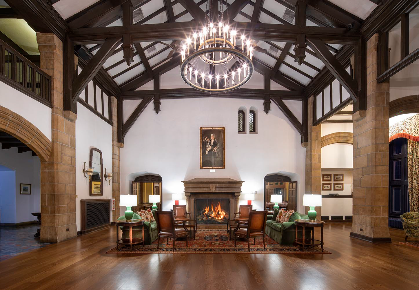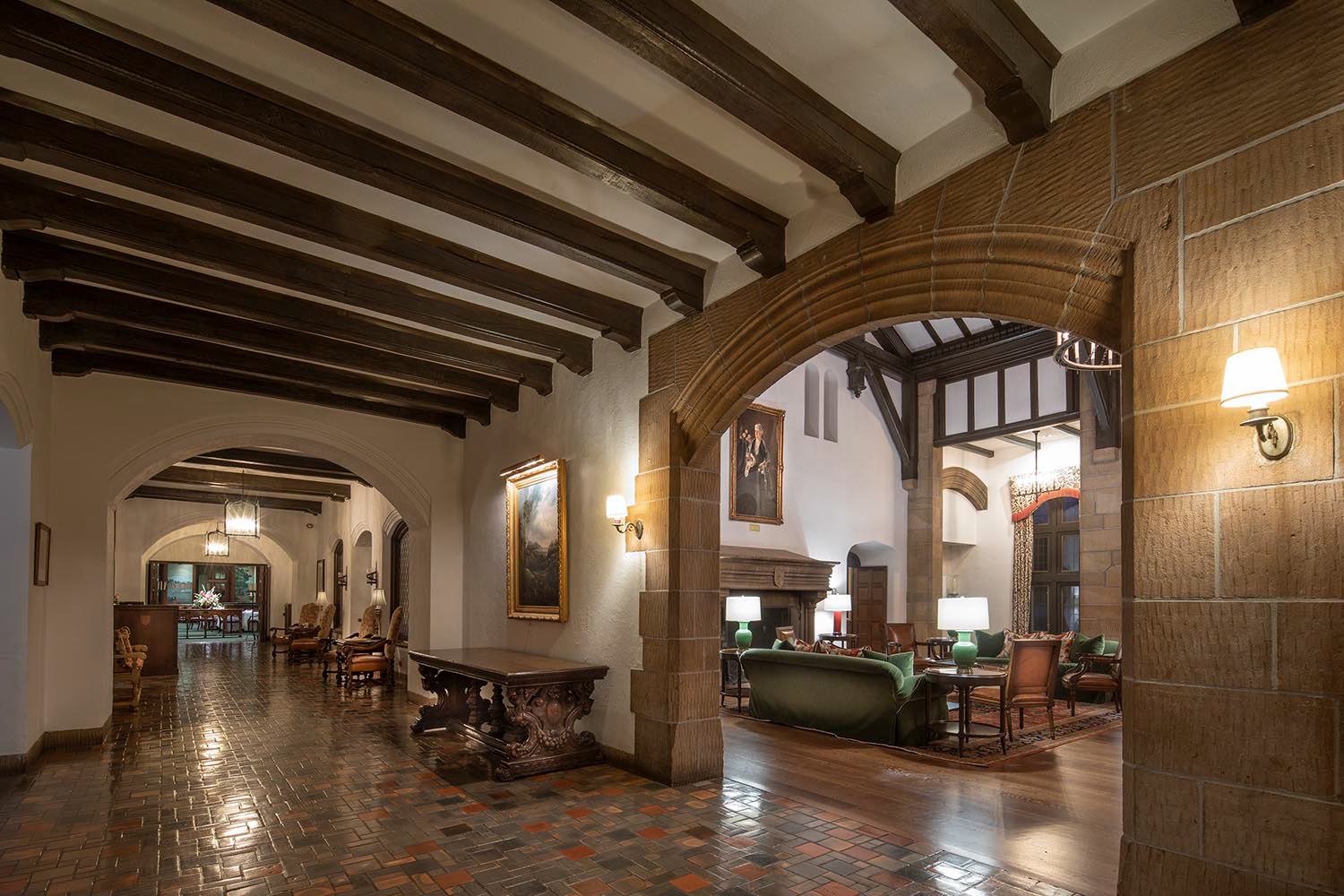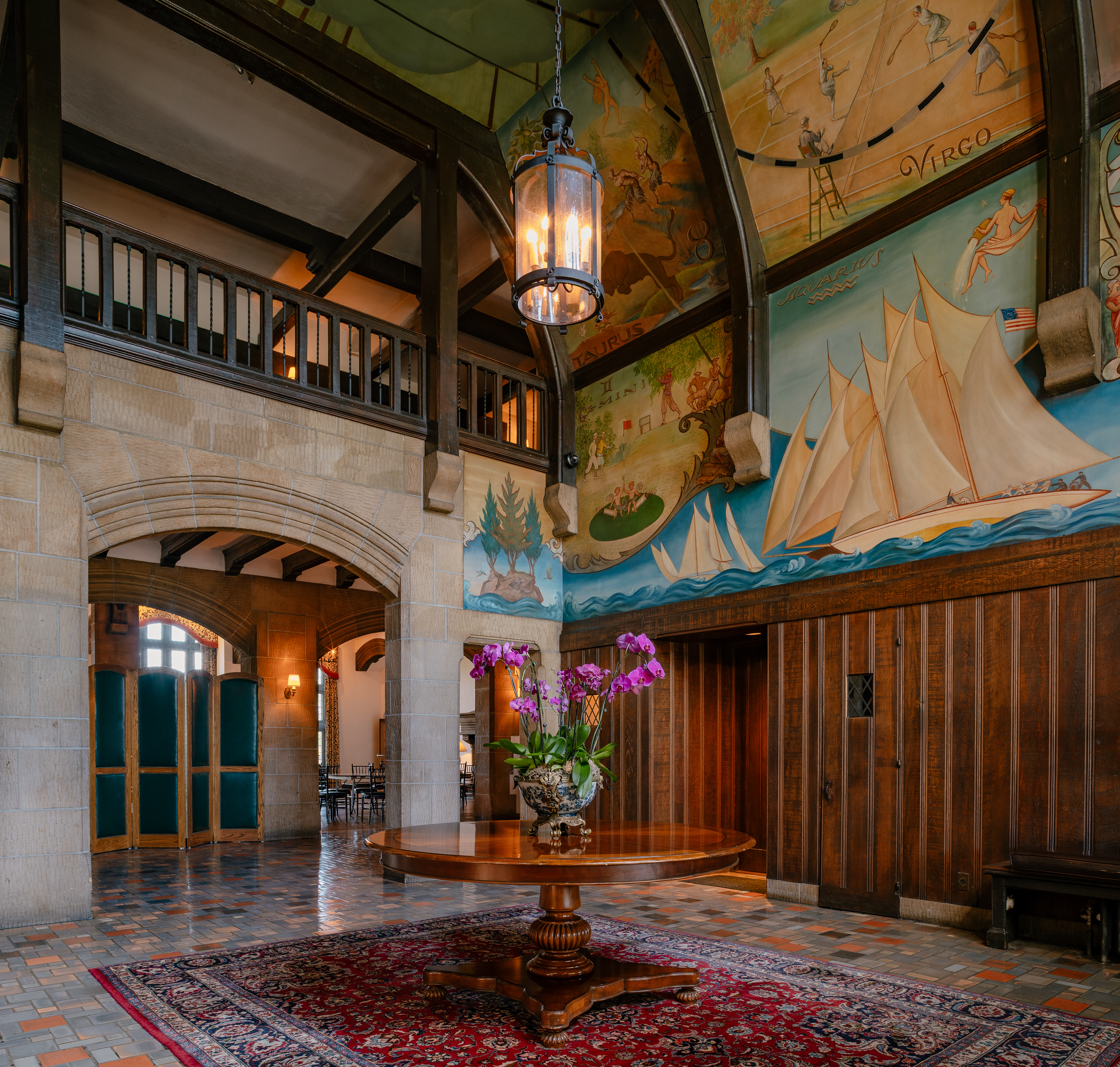Country Club of Detroit resides in a 1927 Smith, Hinchman & Grylls (today’s Smith Group) Tudor revival masterpiece that includes some of the best finishes of the Arts and Crafts era. Resplendent murals are featured in both clubhouse dining rooms, paling in comparison only to the Zodiac murals seen in the grand entryway, masterfully painted by Frederick Dana Marsh.
