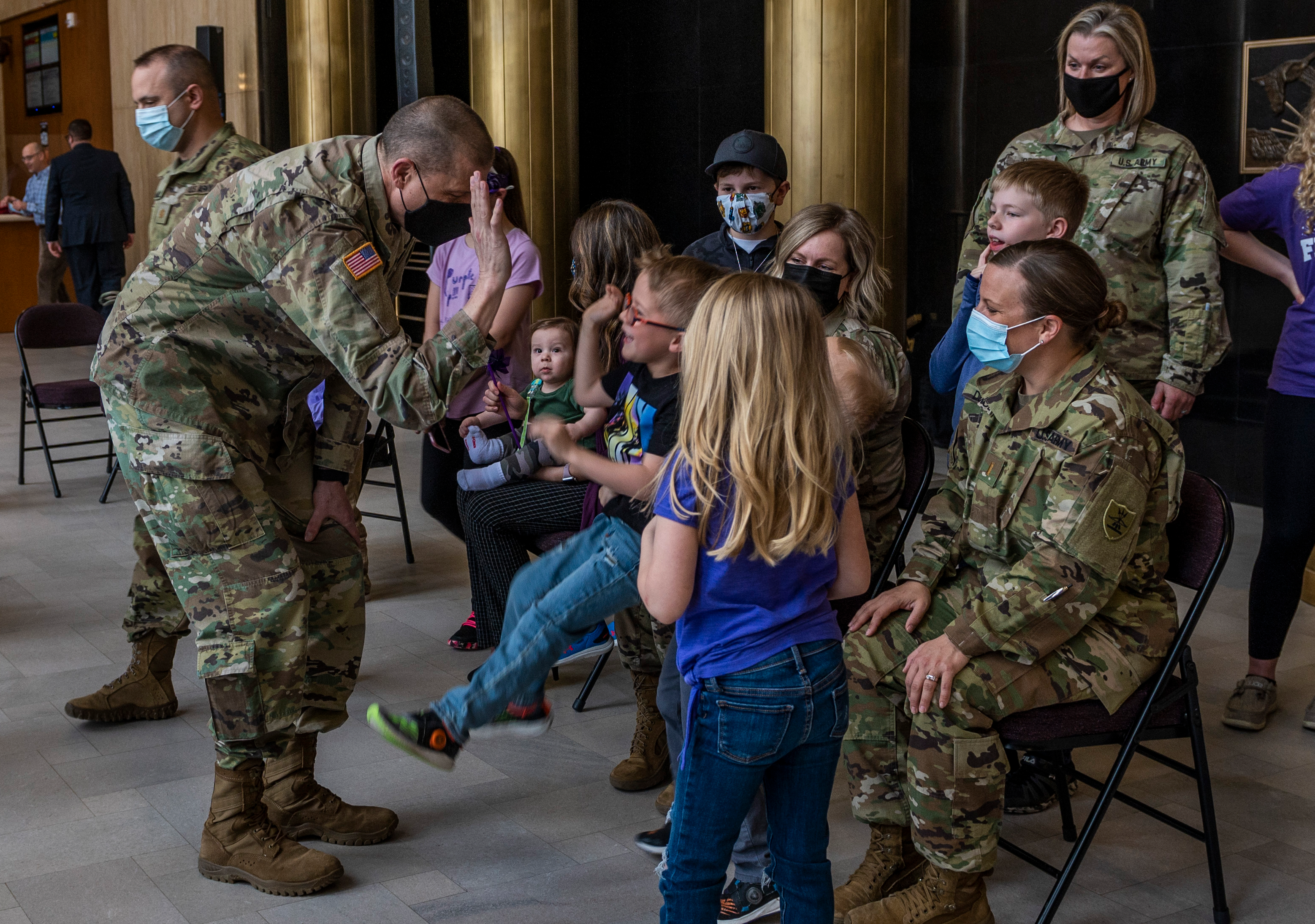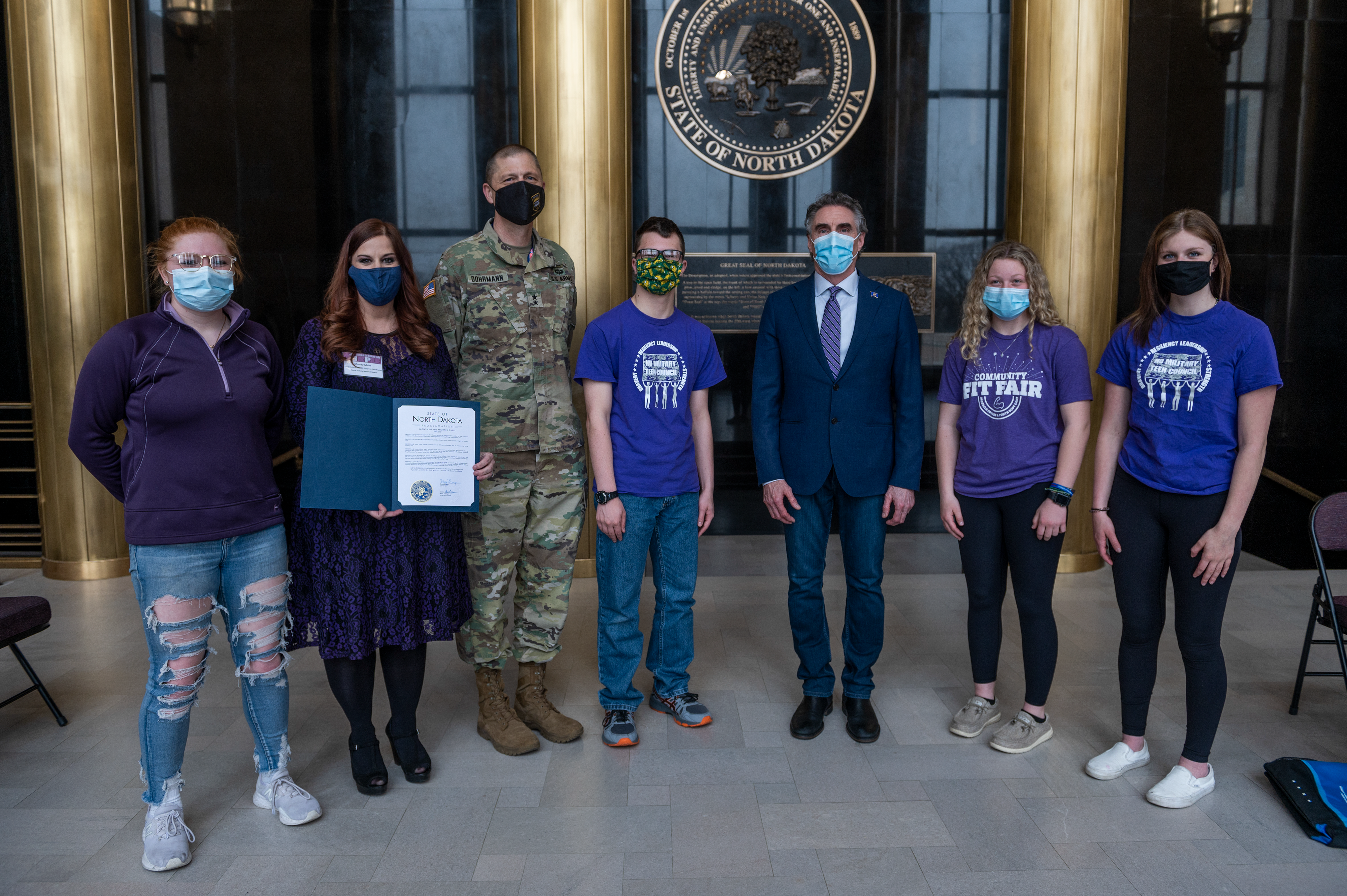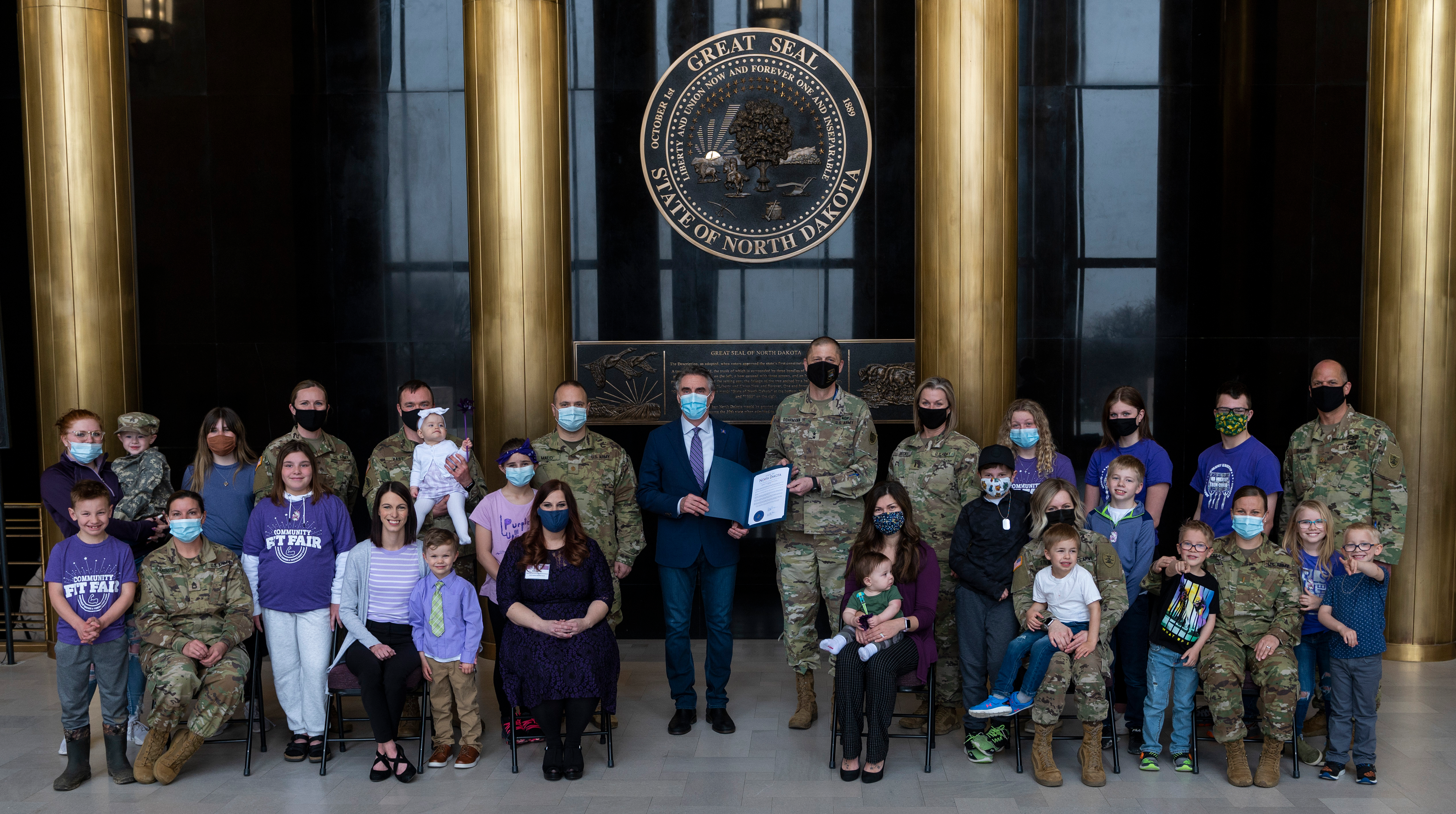 In recognition of April, the Month of the Military Child, Gov. Doug Burgum joined Maj. Gen. Al Dohrmann, N.D. adjutant general, in honoring military Families and children in Memorial Hall, at the N.D. Capitol, Bismarck, N.D., April 15, 2021. (National Guard story and photos by Officer Candidate Michaela C.P. Granger, N.D. National Guard Public Affairs Office).