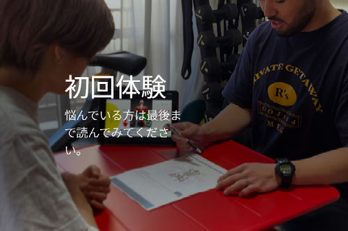 初回体験は1時間半を予定しております。 ご来店→お着替え→カウンセリング→体験→お着替え→提案