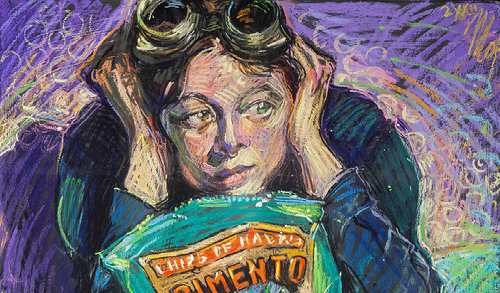 In ihrem Atelier baut Petra Moßhammer ihre Bilder zuerst aus echten Dingen und echten Menschen, dann greift sie zu den Pastellkreiden oder den Ölfarben. Sie malt, was sie sieht – und zwar in Lebensgröße. Oft wählt sie deshalb denkbar enge Bildausschnitte, ihr Zugriff auf die Motive ist ebenso beherzt wie gekonnt. Die fertigen Blätter oder Leinwände strotzen vor Farbe, Dynamik, Emotion. Striche, Pinselspuren, Farbtupfer und Farbflecken bleiben bis zuletzt sichtbar und sind entscheidende Elemente für die Bildgestaltung. Der Entstehungsprozess hat, so scheint es, ebenso Bedeutung wie das Endergebnis. Die eigenwillig bewegten Bildstrukturen sorgen aber nicht zuletzt auch dafür, dass die meisten Bilder trotz der sorgfältigen Arrangements wie Schnappschüsse wirken, heimlich aufgenommen in Momenten des süßen Nichtstuns oder aber der völligen Versunkenheit im Tun. Manchmal fühlt sich der Betrachter fast wie ein Voyeur und manchmal blickt er ratlos auf Situationen, die voller Andeutungen sind. So liegt etwa neben einem anderen Mädchen mit dem Lächeln der Gioconda eine weitere Chipstüte, auf der Leonardos geheimnisvolle Schöne ausgerechnet als Trüffelschwein abgebildet ist. Nicht selten geben minutiös ins Bild übertragene Markennamen, Beschriftungen und andere Textfragmente dem Offensichtlichen eine mehr als überraschende Wendung.