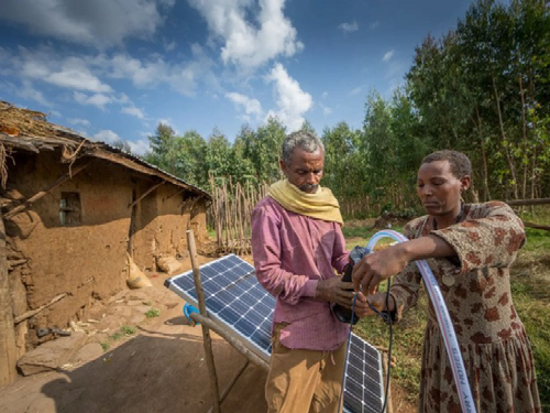 Photo credits: Installing solar irrigation - Mulugeta Ayene/WLE. Cows under tree in Tunisia - MooMe. Solar lantern - Ekotek. Team at factory - Tomato Jos. City road in Indonesia - Afif Ramdhasuma on Unsplash. Woman with dough - Optima.