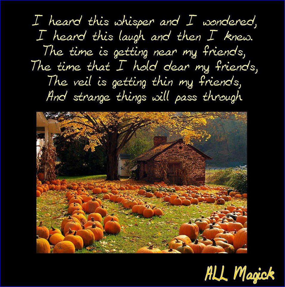 "The spicy, musky scent of Autumn rolled over my town, and I could feel the Veil between the worlds getting thinner" Ellen Dugan ~ Seasons of Witchery