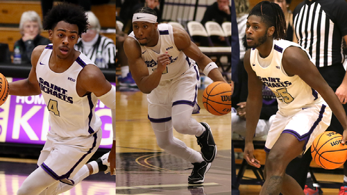 Today we celebrate our seniors! In top photo (left to right): #4 Chuma Oyigbo, #11 Romar Reid and #25 Nahshon Battle