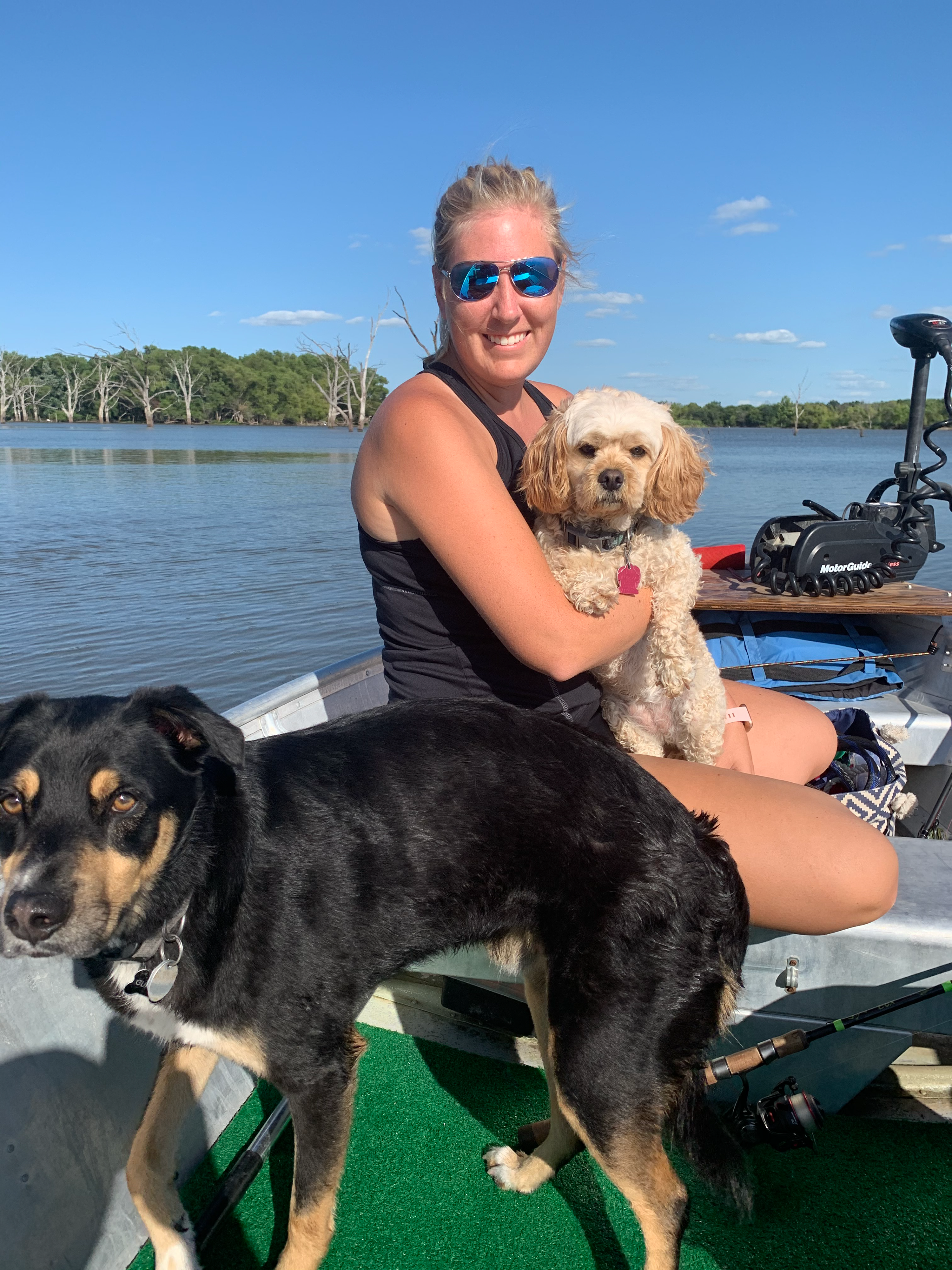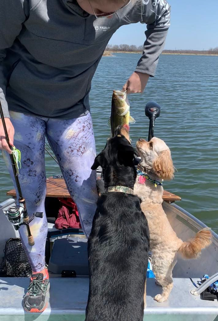 Bullett and Gunner both love fishing about as much as we do. The pups make their voices heard every time we catch a fish and release it if they don't get a chance to lick it first!