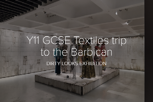 Y11 Textiles students visited the 'Dirty Looks' exhibition at the Barbican. The exhibition provided students with inspiration for their current coursework unit entitled Fragments. The exhibition showcased fashion garments which questions what beautiful fashion is and what fashion can be. The exhibition features fashion designers such as Alexander McQueen, Vivienne Westwood and Miguel Adrover, who examine cultural, political and environmental issues associated with fashion.