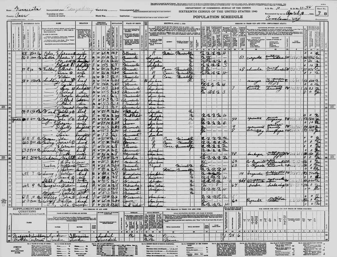 U.S. Census records from 1940 contained information on three generations of Wygle men and their families.