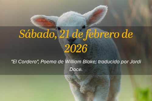 Oh Corderillo, ¿quién te ha hecho? ¿Aún no sabes quién te ha hecho? Te ha dado vida y alimento junto al arrollo y sobre el prado; te ha dado ropas deliciosas, suavísima lana brillante; y te ha dado una voz tan tierna que el valle todo se alboroza. Oh Corderillo, ¿quién te ha hecho? ¿Aún no sabes quién te ha hecho? Oh Cordero, yo he de decirlo, Oh Cordero, yo he de decirlo: se llama por tu mismo nombre, pues que Cordero a sí se llama: es apacible y bondadoso, de un niño tuvo la apariencia: a nosotros, niño y cordero, por su nombre nos llaman todos. Cordero que Dios te bendiga. Cordero que Dios te bendiga. William Blake La traducción es de Jordi Doce (William Blake, Ver un mundo en un grano de arena, Visor, Madrid 2009).