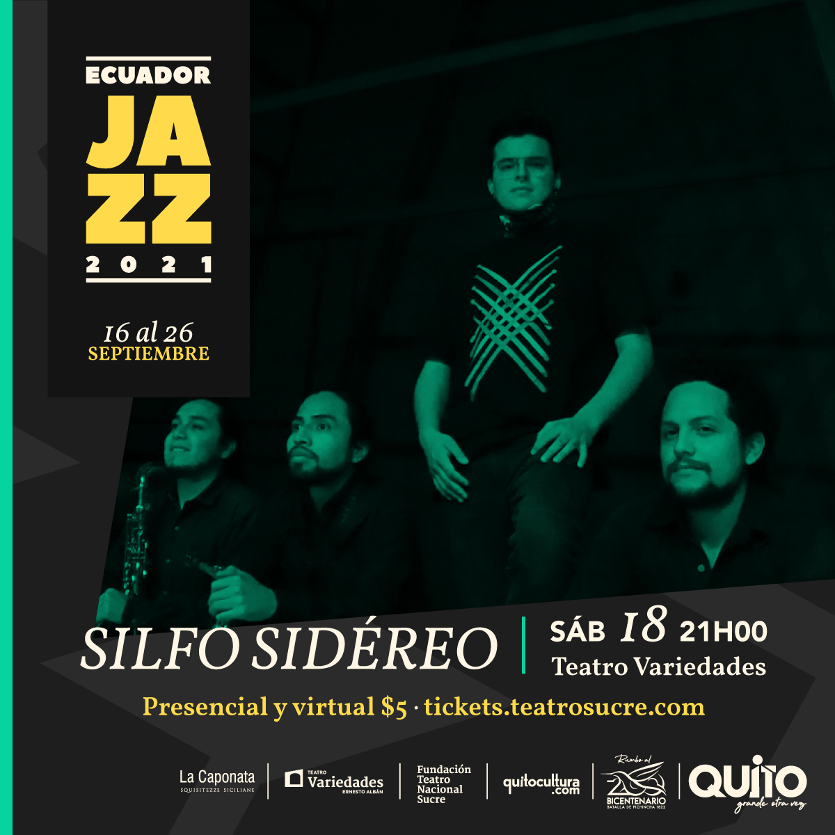 ARUPO • Runa Jazz • José y el Toro • Alex Alvear & Wañukta Tonic • Paúl Sánchez Quintet • Ceci Juno • Sal y Mileto • María Isabel Albuja • Ricardo Curto • Camila Pérez • Wiphala Messengers (MAD) • Piluka y sus Internacionales (MAD) • Alumbra • COKA • Still Anonymous • STOKE • María Isabel Albuja • Juan David Maya • USFQ Faculty Band • Wata Trío • La Sonora Libre • Silfo Sidéreo • Shalom Mendieta • Sebastián Acosta Trío • Illusions Band USFQ College of Music • FPB • Rebecca Chubay Quartet • Talud Jazz Trio • The Santana Experience by "El Negro Acosta" • Colectivo Cantando Juntas • Pocket Band USFQ • YELENA • Gabino Torres • NeoNémesis • Berklee Salsa Ensemble (Boston) • Honor Jazz Band (North Dakota) • Indigno