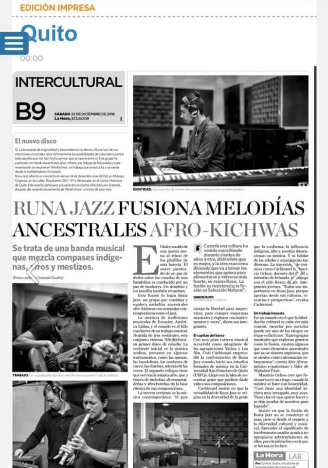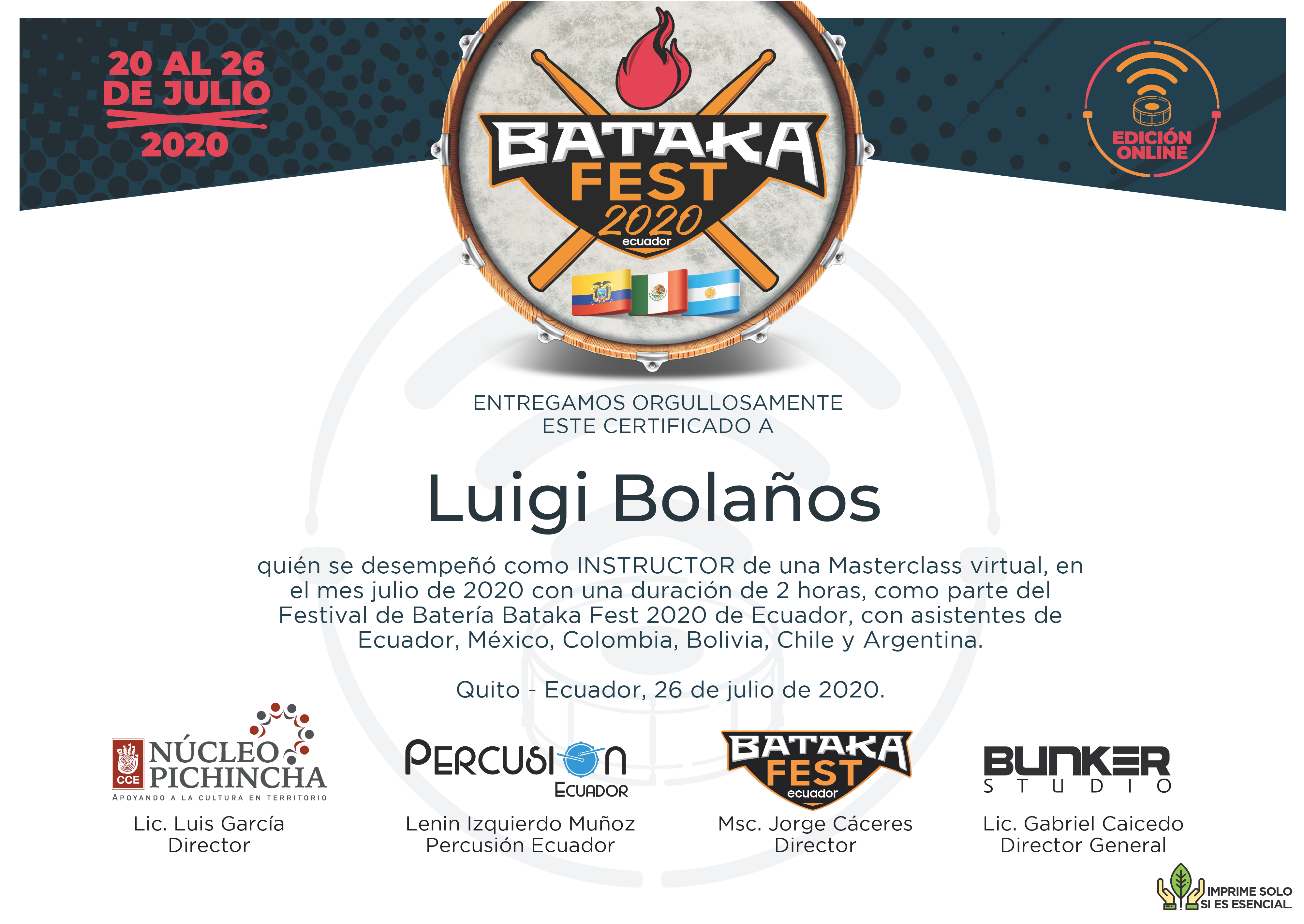 Few times in our milieu we find real surprises. Luigi Bolaños is a surprise himself, virtuoso drummer and percussionist. At his young age, he is a recommended musician for the most relevant and outstanding projects in the country." Ramiro "El Negro Acosta" (EC).