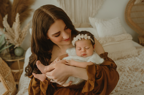 Newborn sessions are usually held between 10-21 days of baby's birth, depending on the wellness of both baby and Momma. I only need you due date to hold your spot when booking, so I recommend booking your newborn session in the 2nd trimester to make sure I have room in my schedule around your due date. Newborn sessions typically take 2-4 hours. Props, wraps, headbands, and bonnets are all included with custom set designs fit for your preference - just bring yourself and your little one & leave the rest to me! Choose between my lifestyle studio setup, traditional newborn poses, or a little of each!