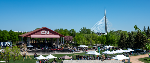 Beneath a bright blue sky, under a glaring gold sun, on growing green grass, where the rivers meet — students, educators, and community members came together on Thursday, May 22, 2025, at The Forks for the inaugural Learning with the Land: A Gathering to Celebrate and Dream.