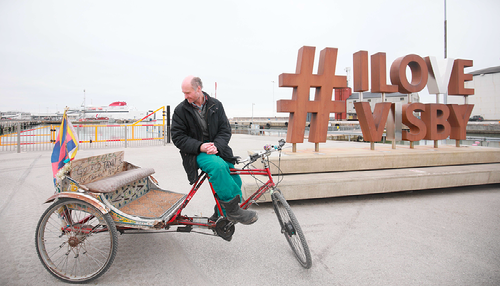 Carl Wachtmeister, 59 ans, à Visby depuis 2000. Il exerce différents métiers, selon la saison, dans la construction, dans l'agriculture et comme un chauffeur de taxi-bicyclette et d'autres. Il a appris le français au lycée et a passé un peu de temps en France, à Paris et à Angoulême. Visby, Gotland, 12 mars 2024 © Sami Karaali