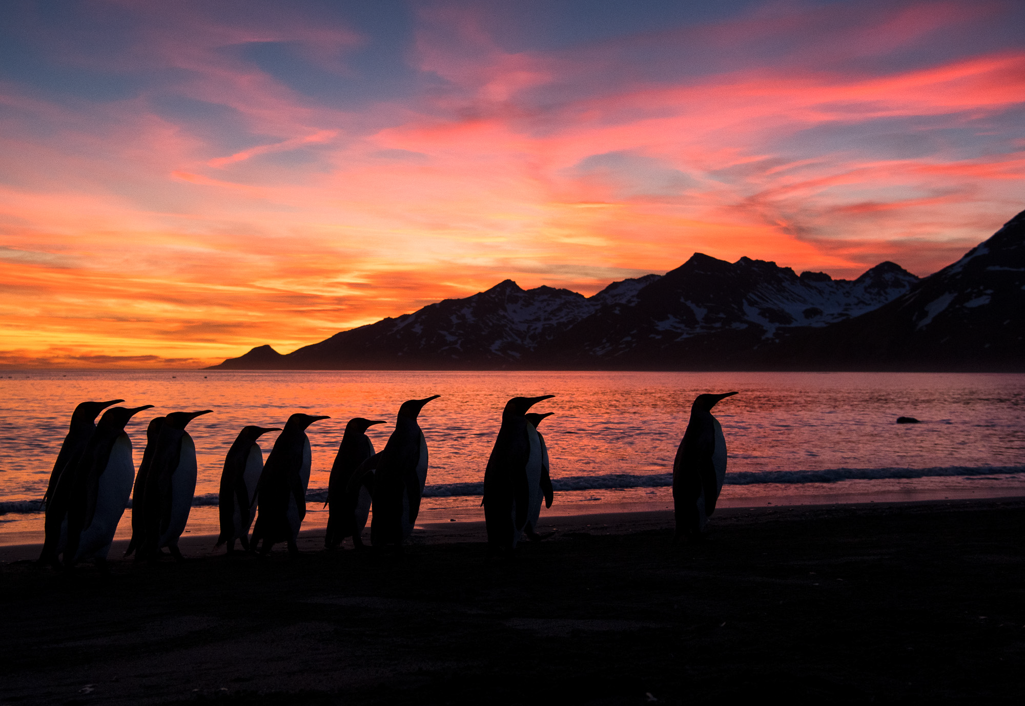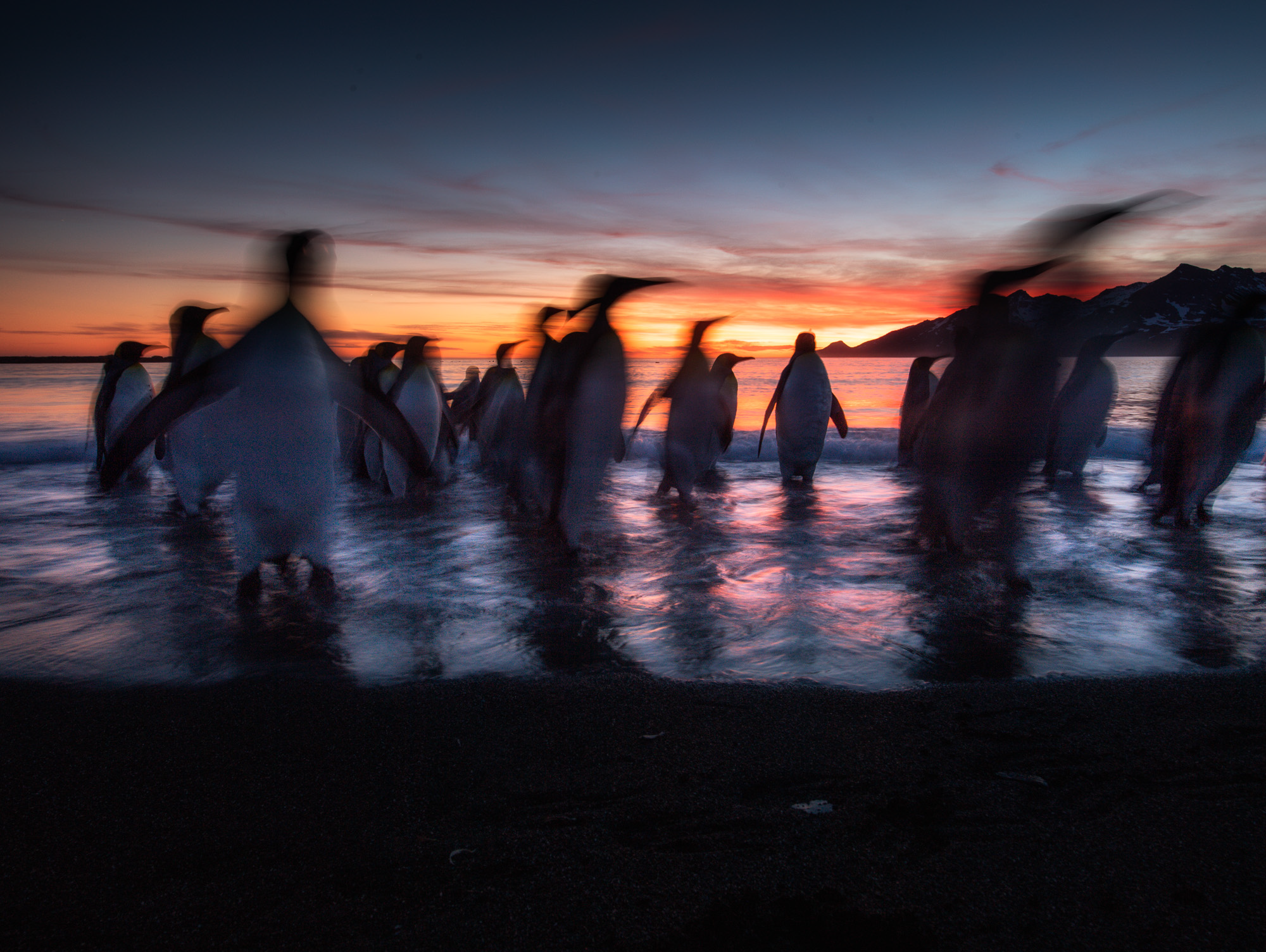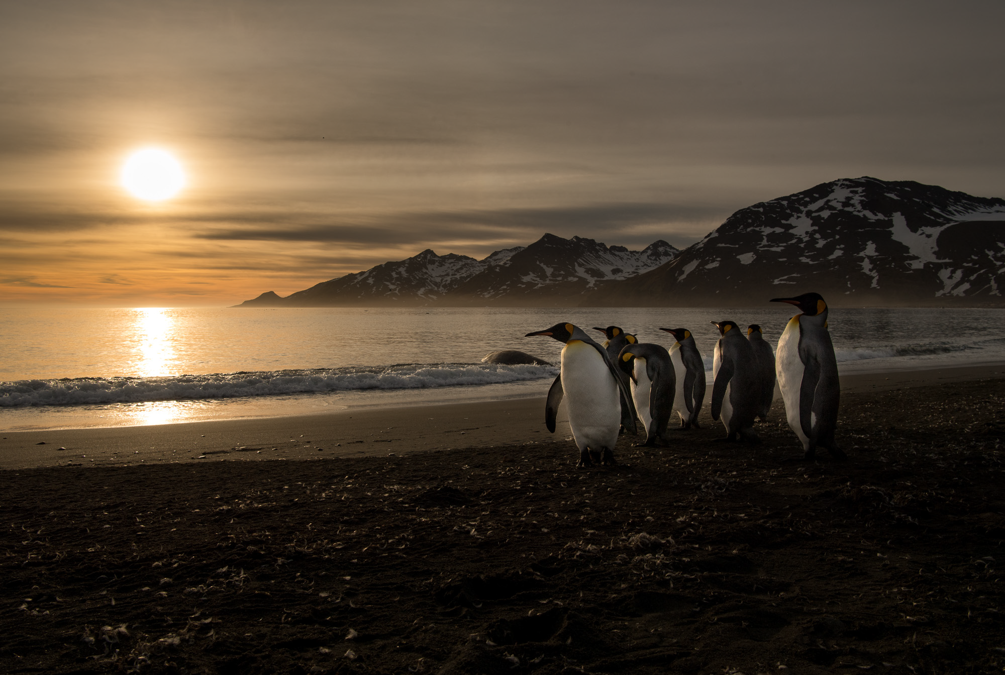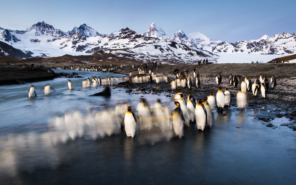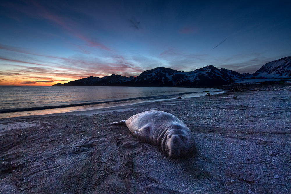Day 7 – 13 Nov 2015 We landed all guest on the beach of Gold Harbour BEFORE sunrise. With favourable weather conditions this turned out to be one of the best mornings ever in the history of WildPhoto Travel. Magic sunrise, snow-covered mountains and thousands of King penguins gave everyone plenty of photo opportunities. We also managed to land our photographers on a smaller beach for the sunset where we photographed more King penguins and Elephant seal puppies.