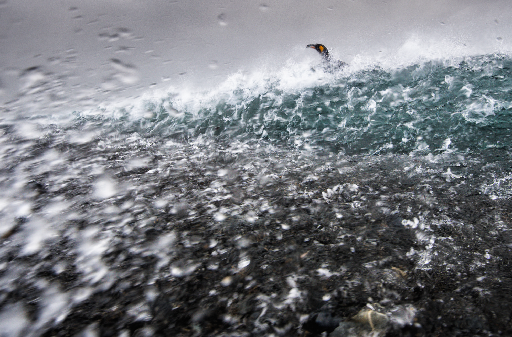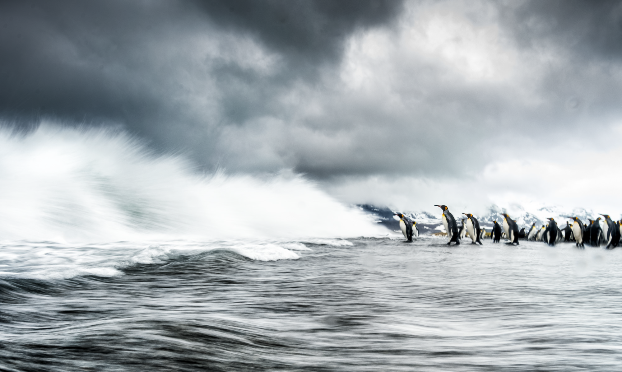 Day 10 – 16 Nov 2015 After 3 very early mornings we woke up to dark clouds and also more waves. "Bad" weather doesn't mean boring photography, and we got great opportunities photographing penguins entering the beach in the surfs. In the end we had to leave the beach when the wind picked up and gave us some real expedition weather.