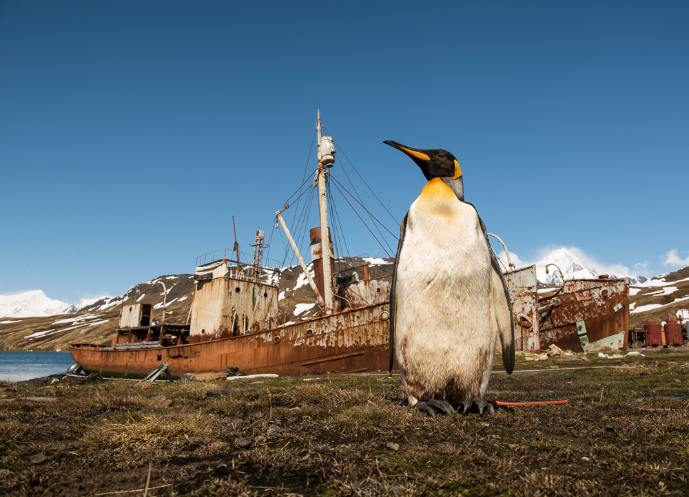 Day 6 – 12 Nov 2015 On every expedition to South Georgia we have to visit Grytviken, a former whaling settlement. Today the wildlife has taken over the "city" where terns are nesting in the wrecked ships and penguins are the only native pedestrians you can see in town. In the evening we visited another beach with Gentoo penguins, South Georgia shags and Elephant seals in great evening light.