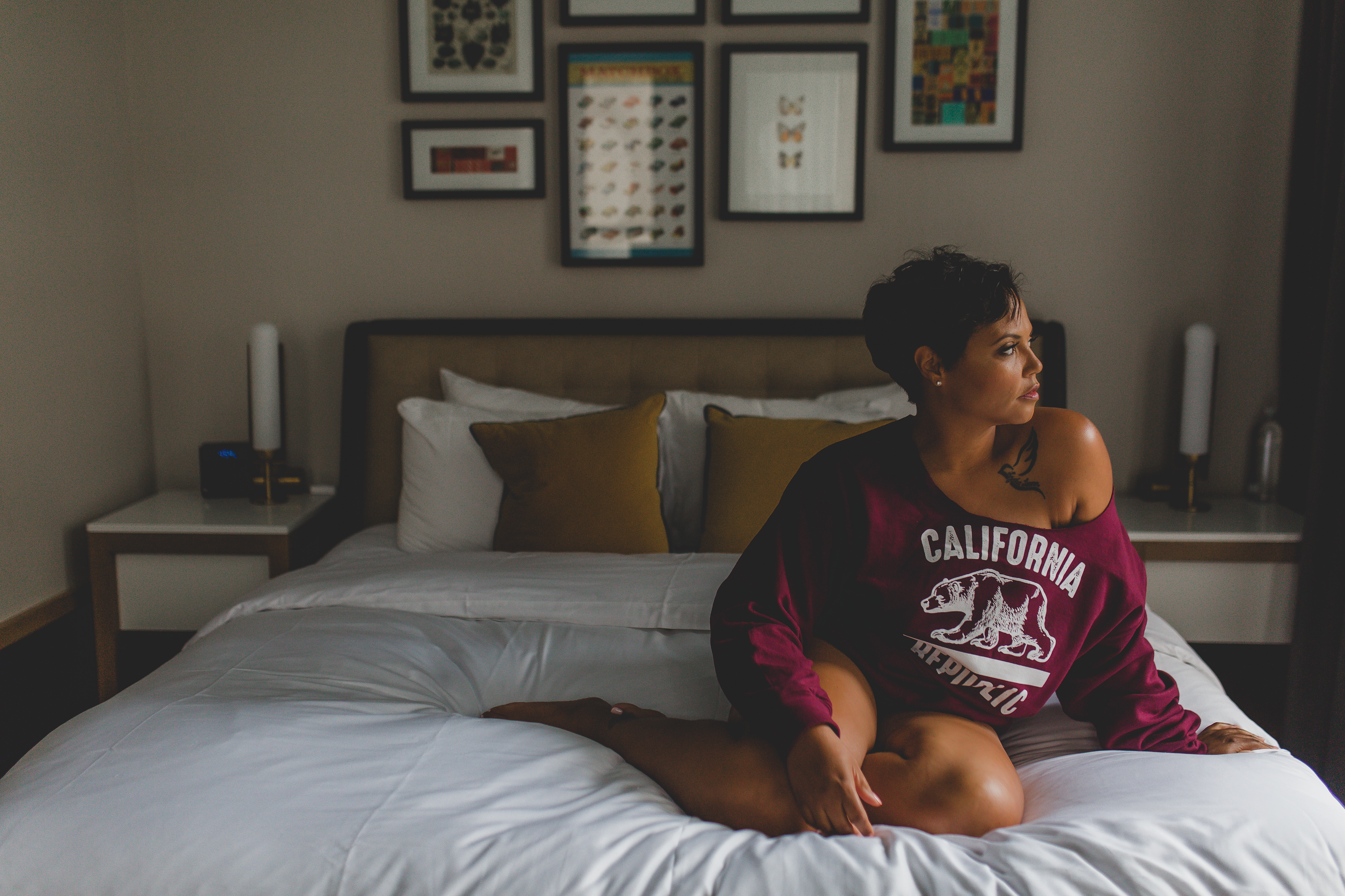 There are NO limits on how many you bring to the session. I'd rather you have all the options for us to go through together than for you to be bummed you left something behind. I will say we generally make it through about 3 to 4 different outfit changes though on average with a session. When it comes to what to bring, it's always going to be whatever you feel sexy in! Most women will opt for lingerie, but I love oversized sweaters, off-the-shoulder tops, tanks, silk robes, panty house, bodysuits, a tee, and undies, and anything lace or leather usually works well! I tend to shy away from props as my style has more of a lifestyle/editorial feel to it (so I don't want it to feel too posed!), but many ladies will also bring along a favorite pair of heels or piece of jewelry to have on hand too.