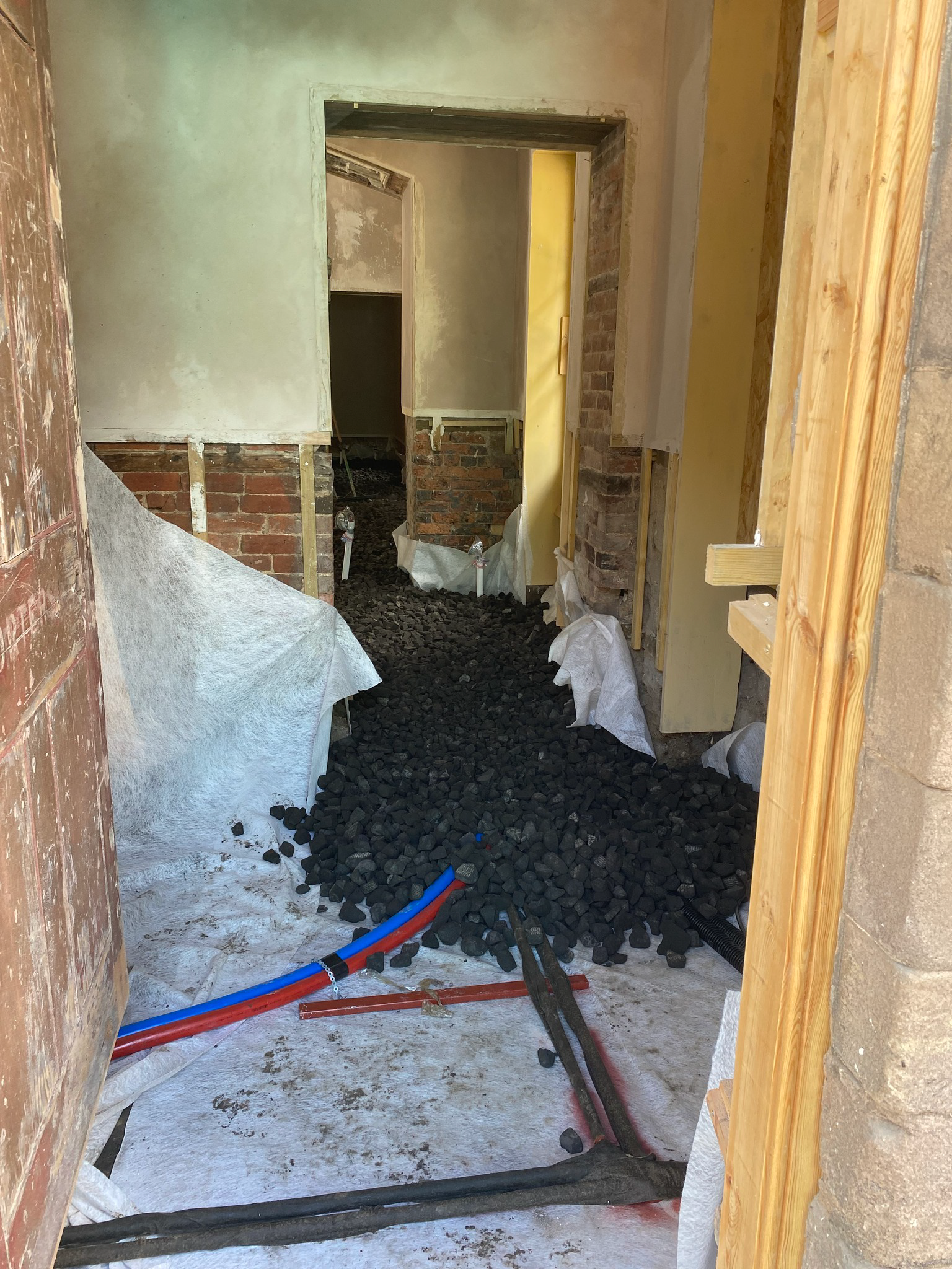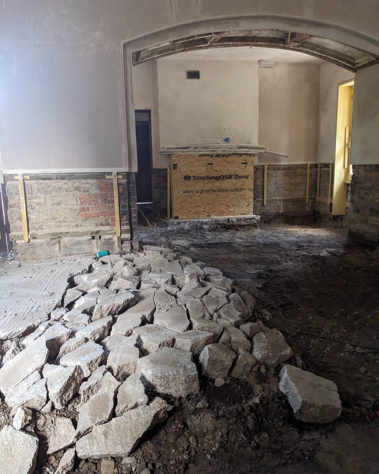 The modern concrete floors at Wingfield were carefully broken out ahead of a new breathable insulated floor going in.