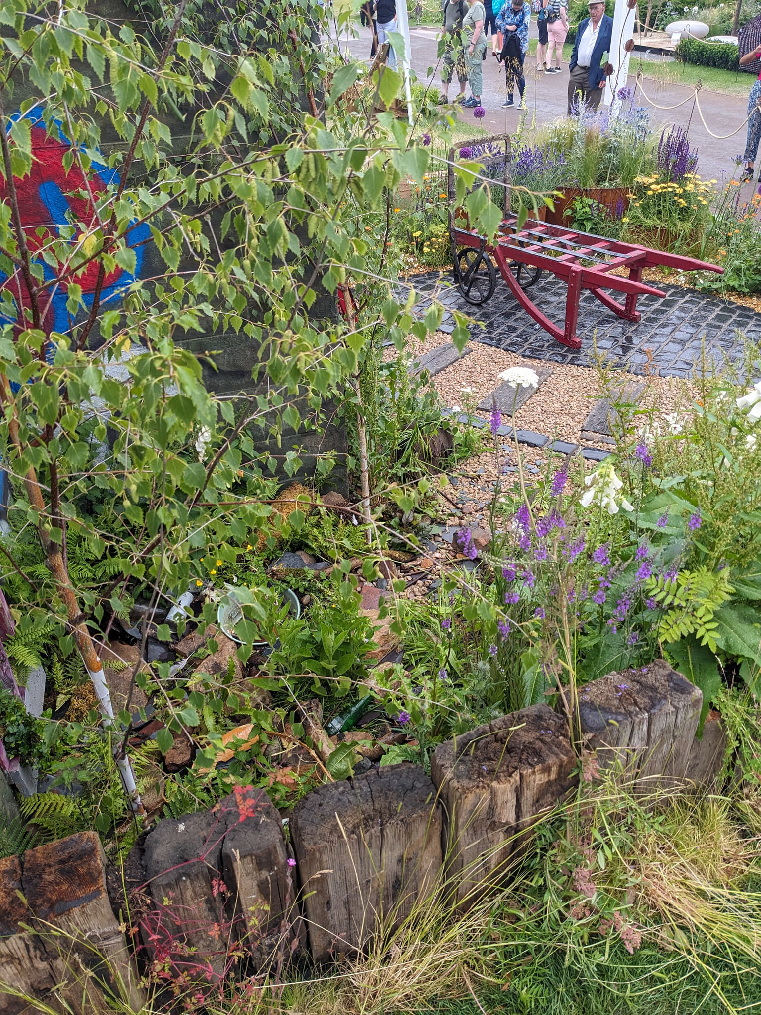 The design involved the students building a very realistic façade of the station building, showing one half in a derelict state and the other, renovated. Around this, a planting scheme was created to reflect the change from derelict to restored. The judges were particularly taken not only by the detail and range of plants selected, but also the quite unique touch of the cultivated planting echoing the colour and form of the wild flowers – something they had not seen before in a show garden.