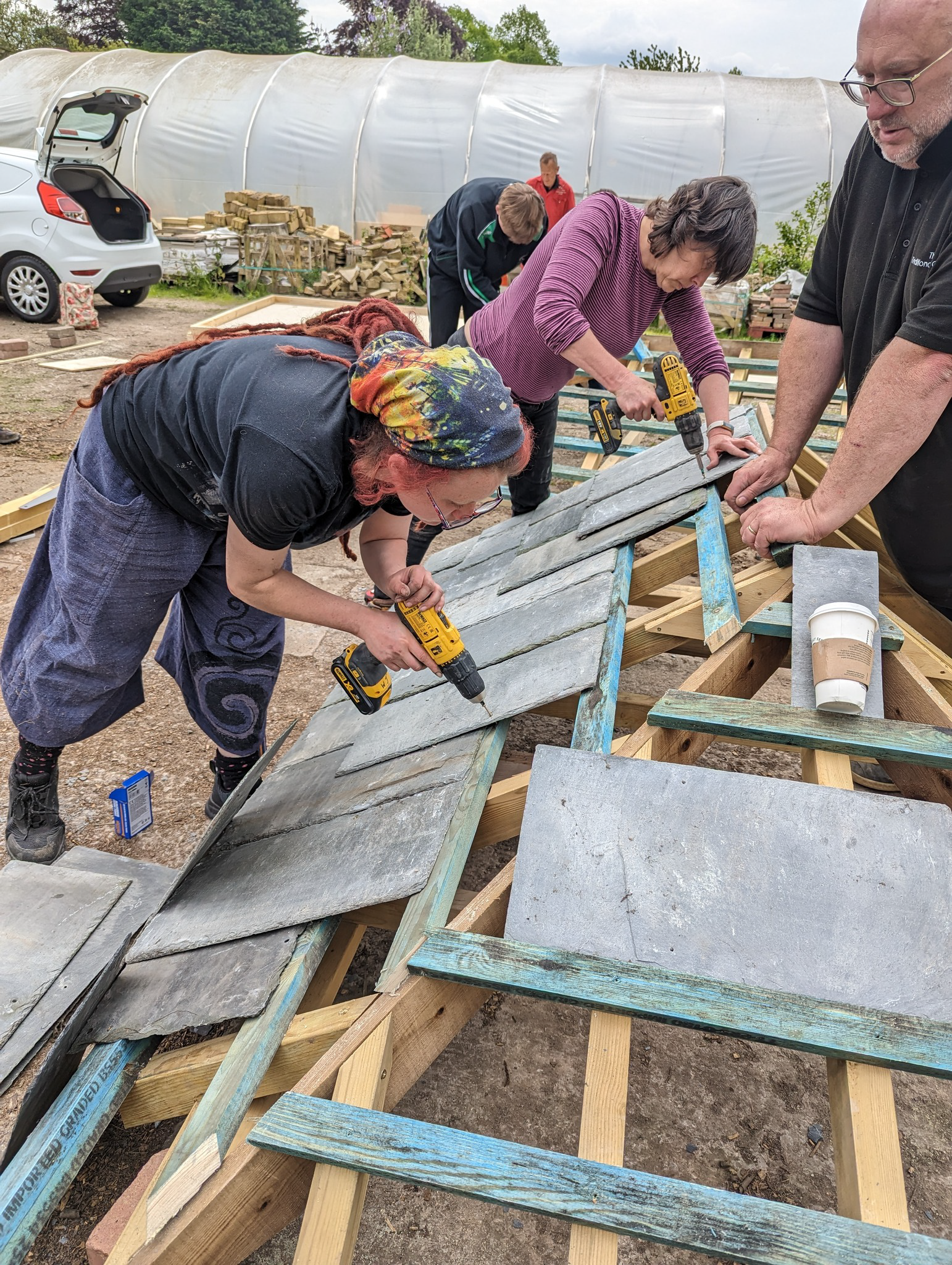 None of the students had any previous experience of creating or building a show garden. Along the way they were introduced by our DHBT Academy Volunteer - heritage roofer, Richard Jordan - to the skill of cutting, fixing and laying slates for the roof to the station.
