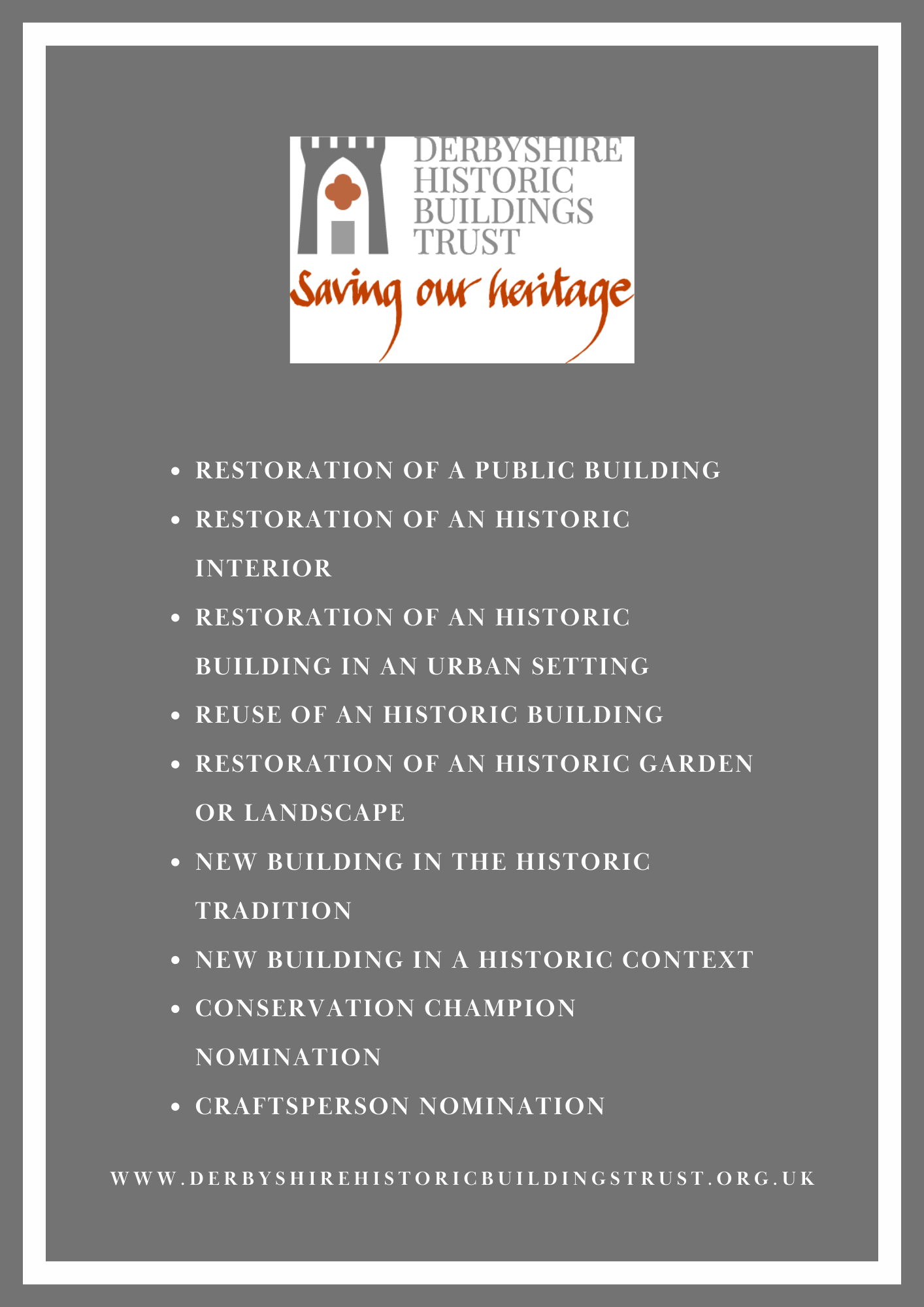 A reminder that we are currently accepting applications for the 2023 DHBT Architecture Awards - the deadline is the 31st August. There are a number of categories for 2023, so many historic building projects will find they can apply. We’ve also got our ‘Conservation Champion’ and ‘Craftsperson’ categories too.