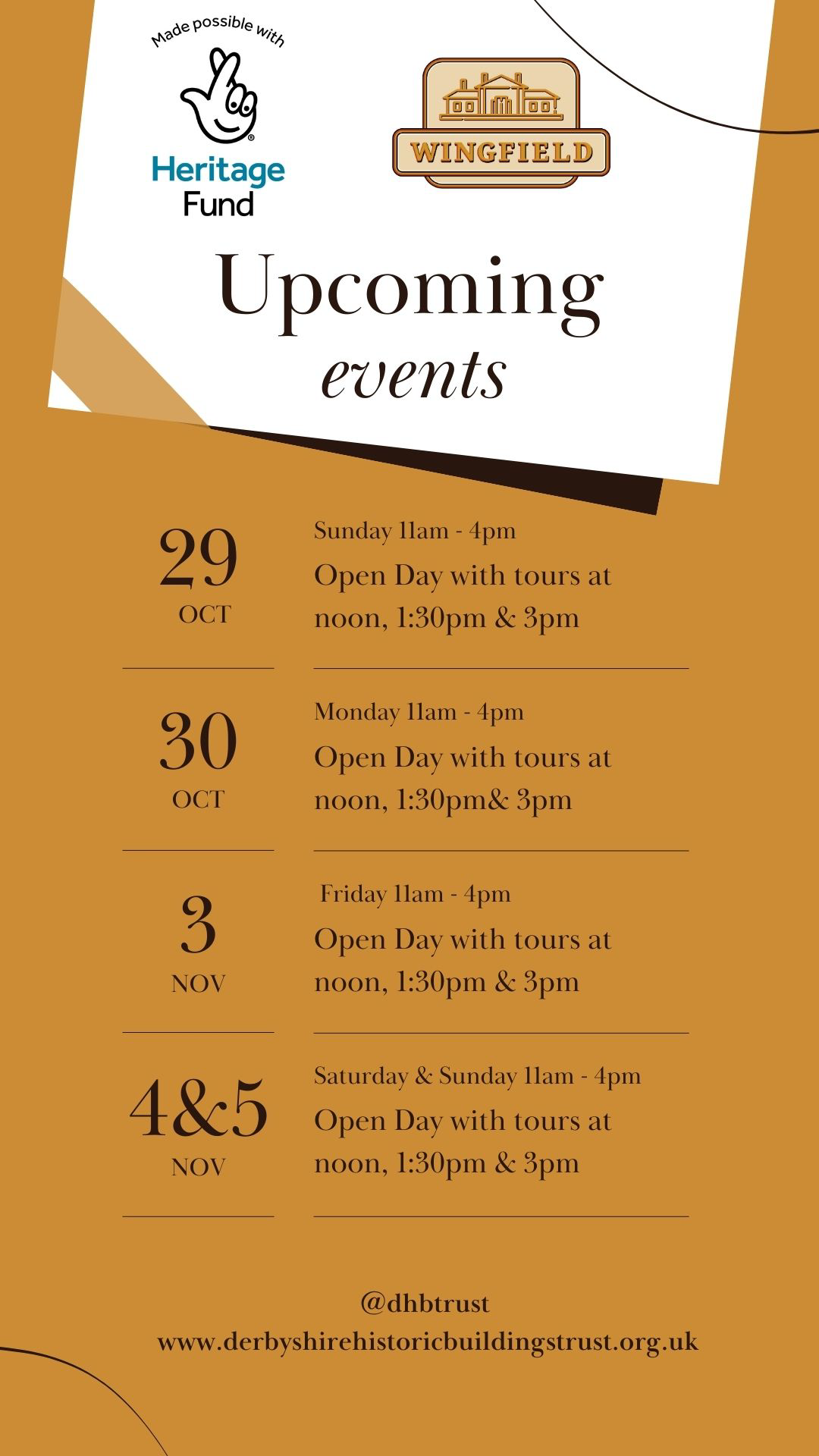 All events are free and further details will be available on our website and social media sites (@dhbtrust) in coming days. Pretty much all the activities are family friendly and some will be run in conjunction with friends such as Derbyshire Wildlife Trust. We want as many people as possible to visit Wingfield to enjoy the restoration and find out more about the work involved. In 2024, once the buildings have been occupied by new tenants, we are still committed to providing public access to the buildings on special occasions, such as Heritage Open Days.