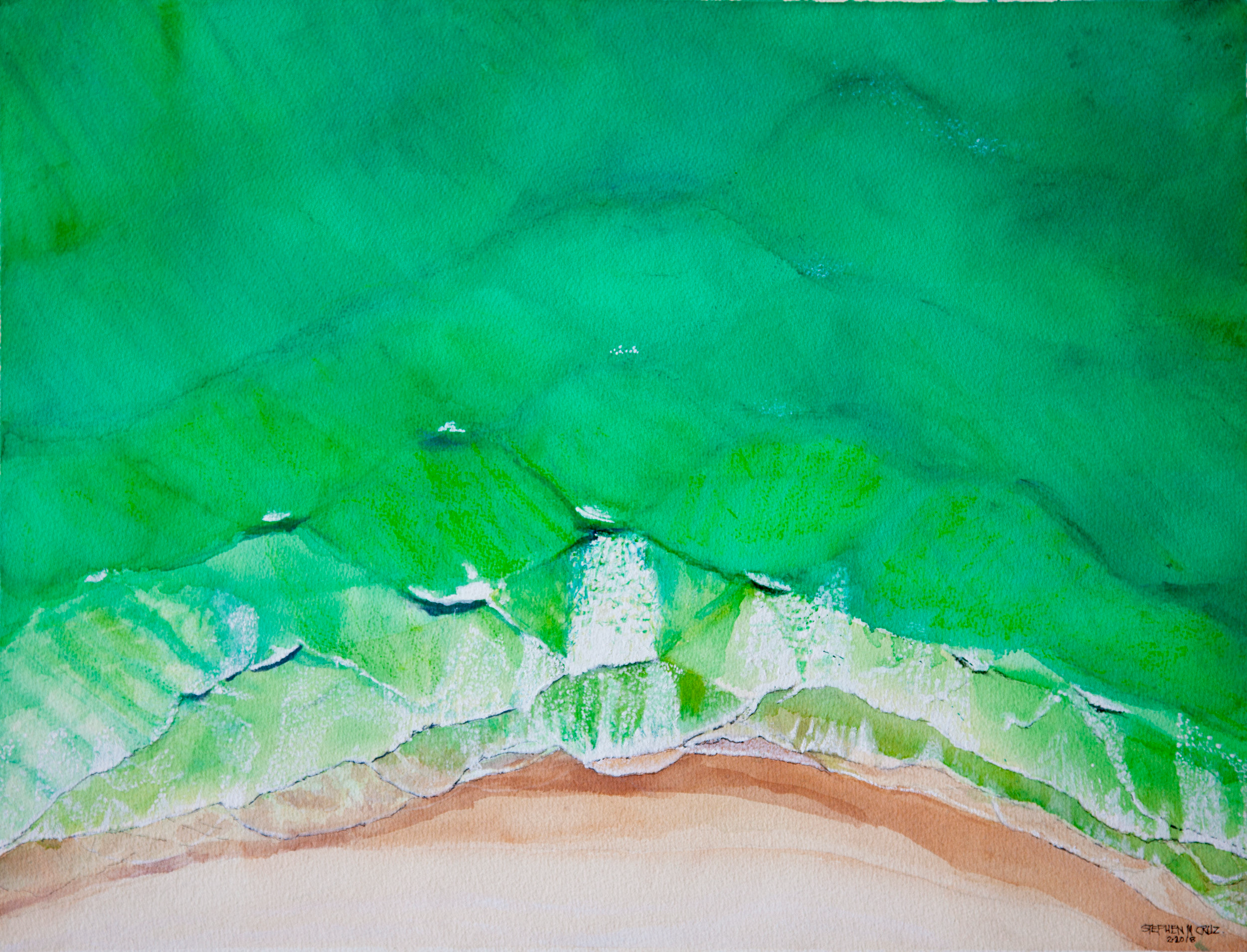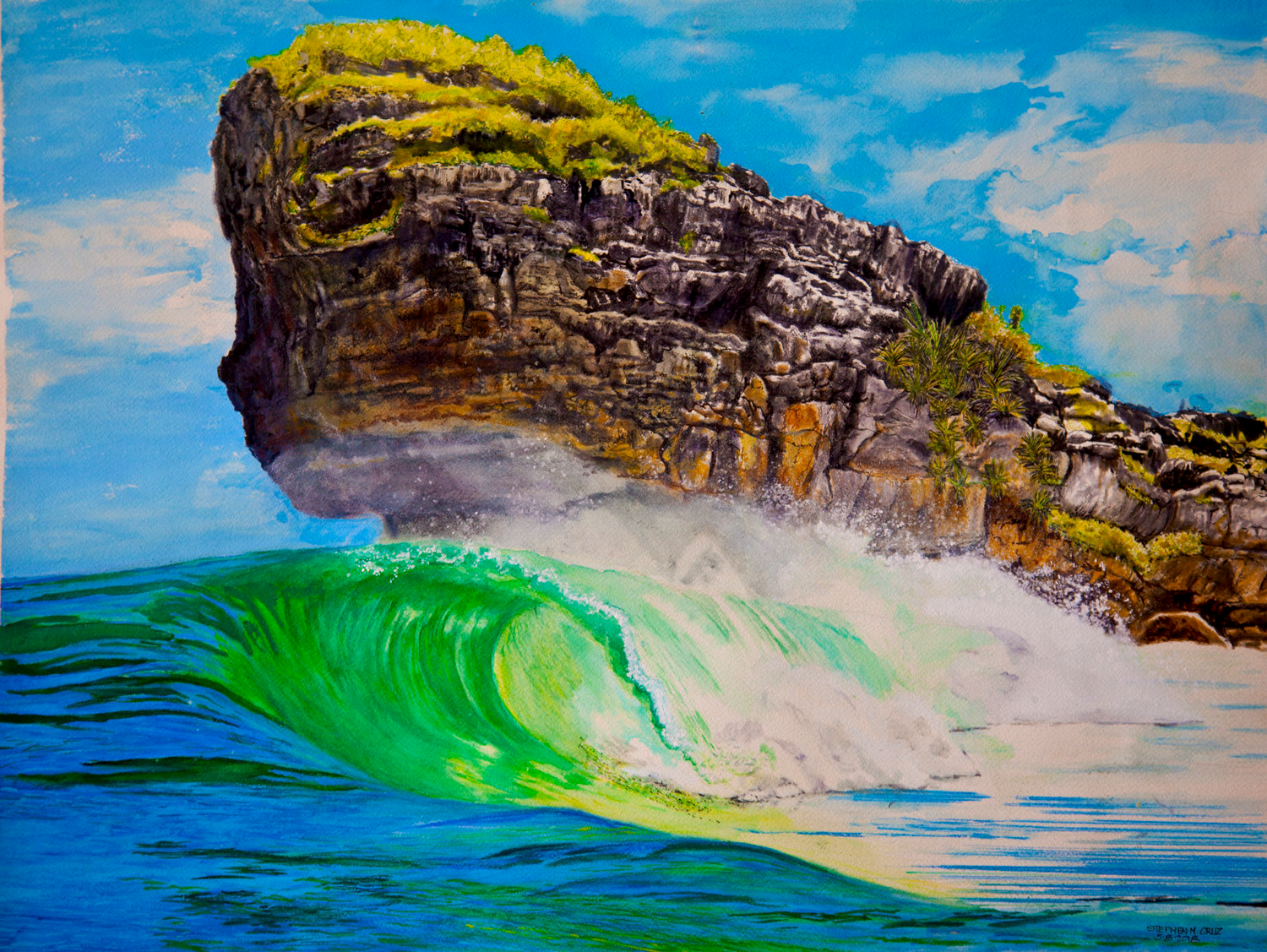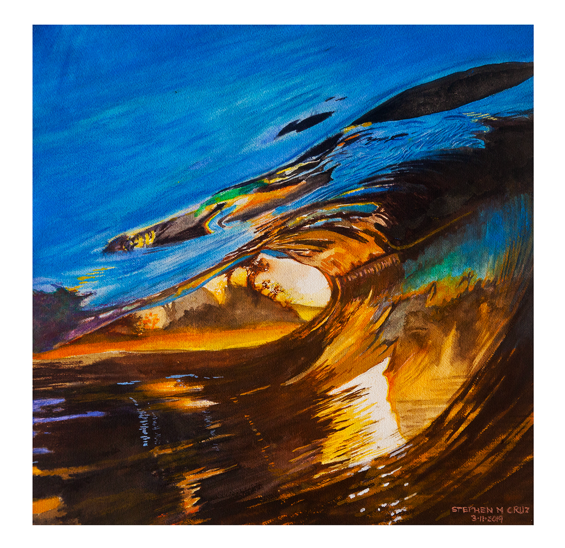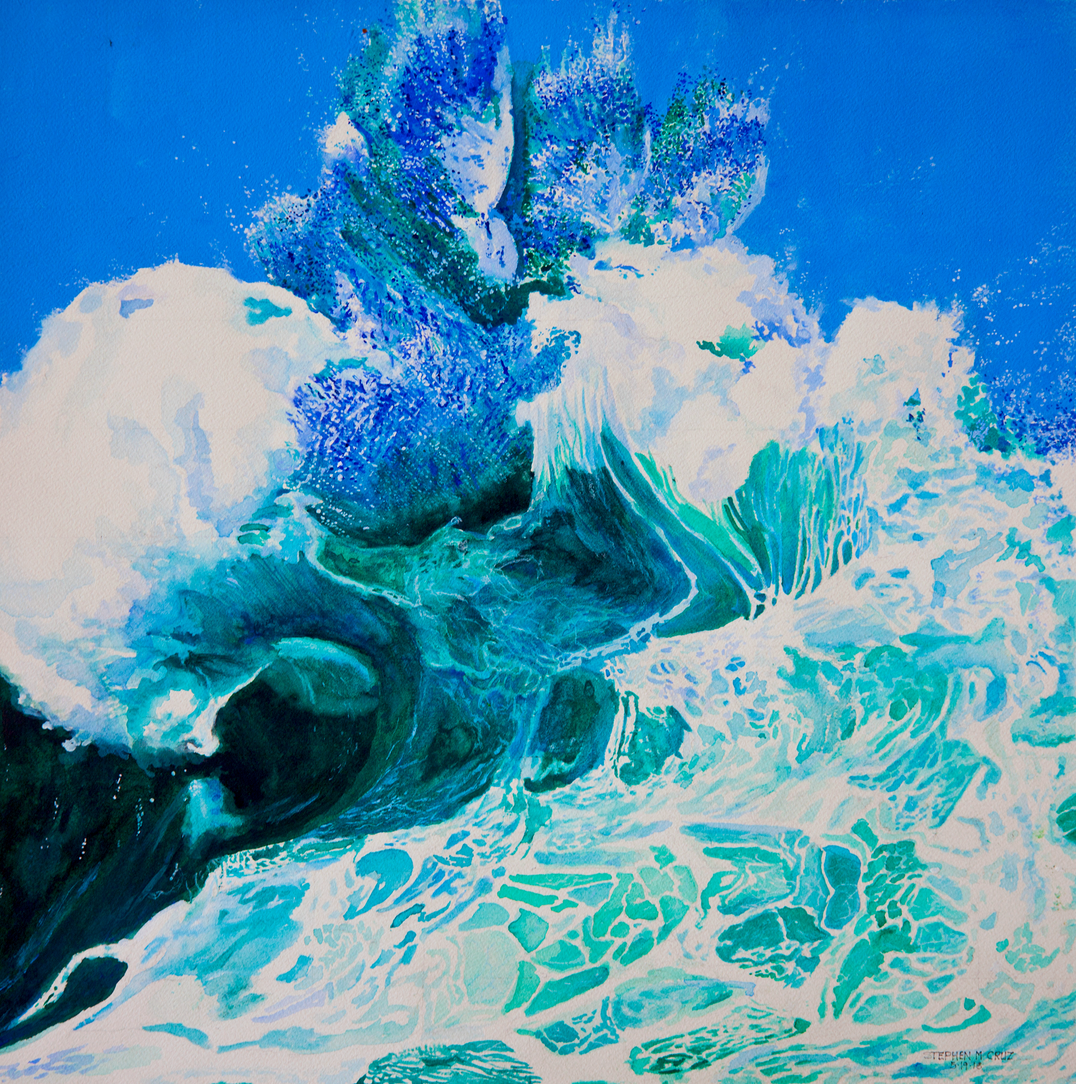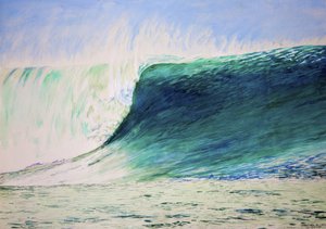 In painting this series I was inspired to express those qualities of waves that I connect to, that imbue me with feelings of awe and wonderment at a natural phenomenon that challenges surfers the world over, as an invitation and warning.Perhapse, in this manner we can all appreciate and protect the ocean waters and shores upon which all waves break.