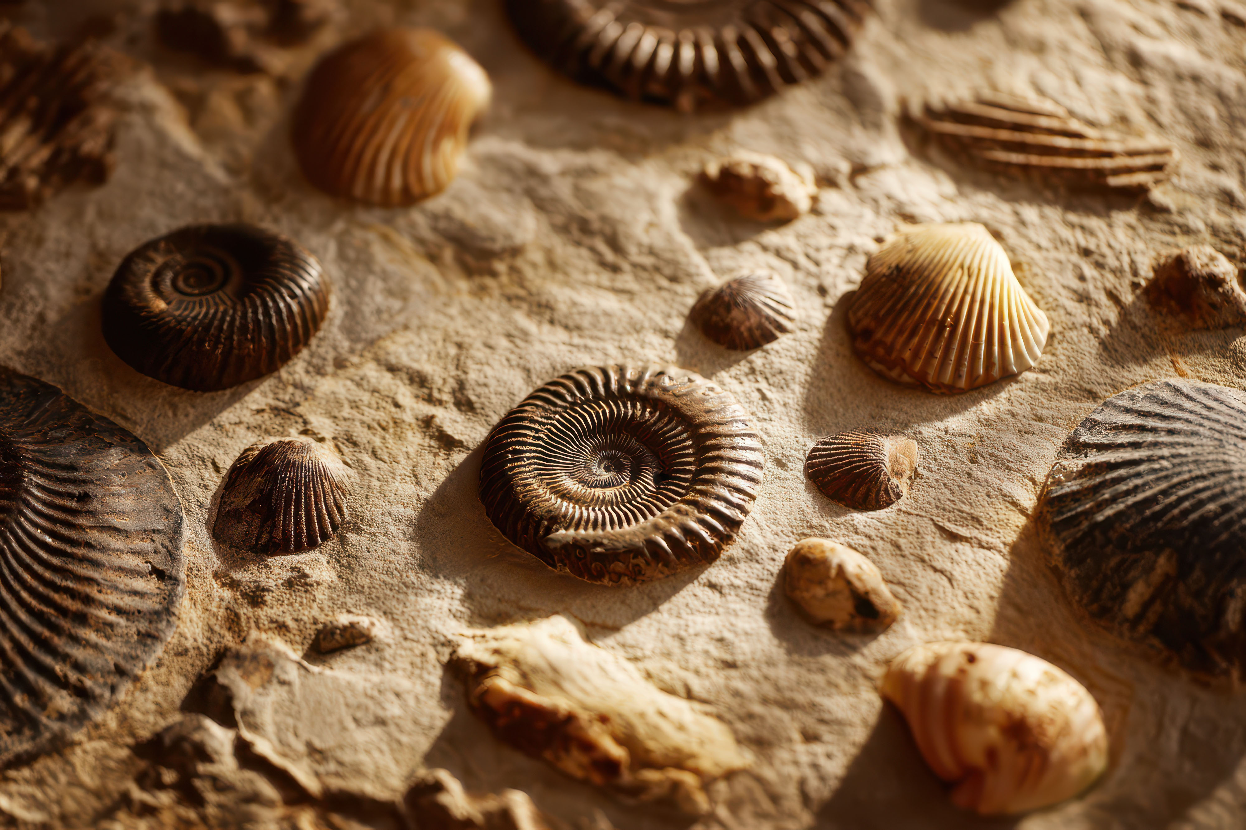Creato con immagini di Mykola - "Close-up of a prehistoric seabed fossil bed featuring ammonites and mollusk shells" • pillerss - "Bologna.,Maggiore Square at night."