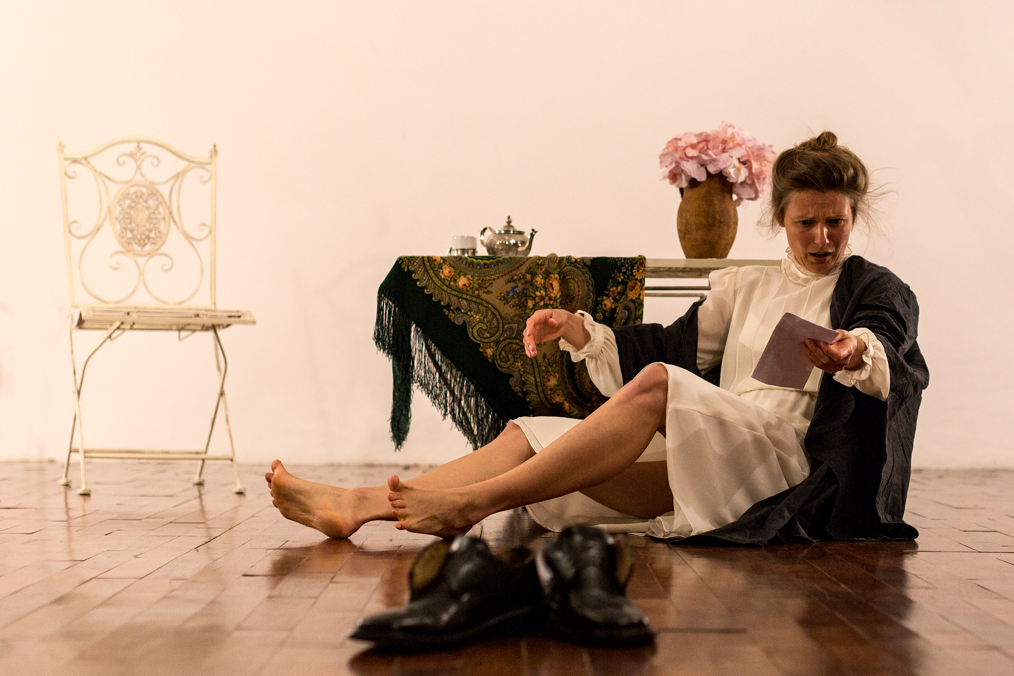 ● Katie’s Tales - a one-woman theater performance, weaved from fragments of poetry, dialogues, and traditional Polish songs. It depicts the life of a young lady waiting for her lover, who, after a terrible event, left with a promise to come back, one day. Her life unfolds during new and savage times - times of waiting and of becoming. Accompanied by two foreign servants, she lives in a garden, under the shades of cherry trees, silent witnesses of her life and of History. Everyday Katy receives visitors and tells them stories of hopes and aspirations, again and again patiently making herself ready for the reunion. The garden, filled with memories: hers and those of generations, filled with unfulfilled dreams and desires, becomes a metaphor of a human psyche, which, for each of us, has a potential for transformation into a Garden Of Eden, one day.