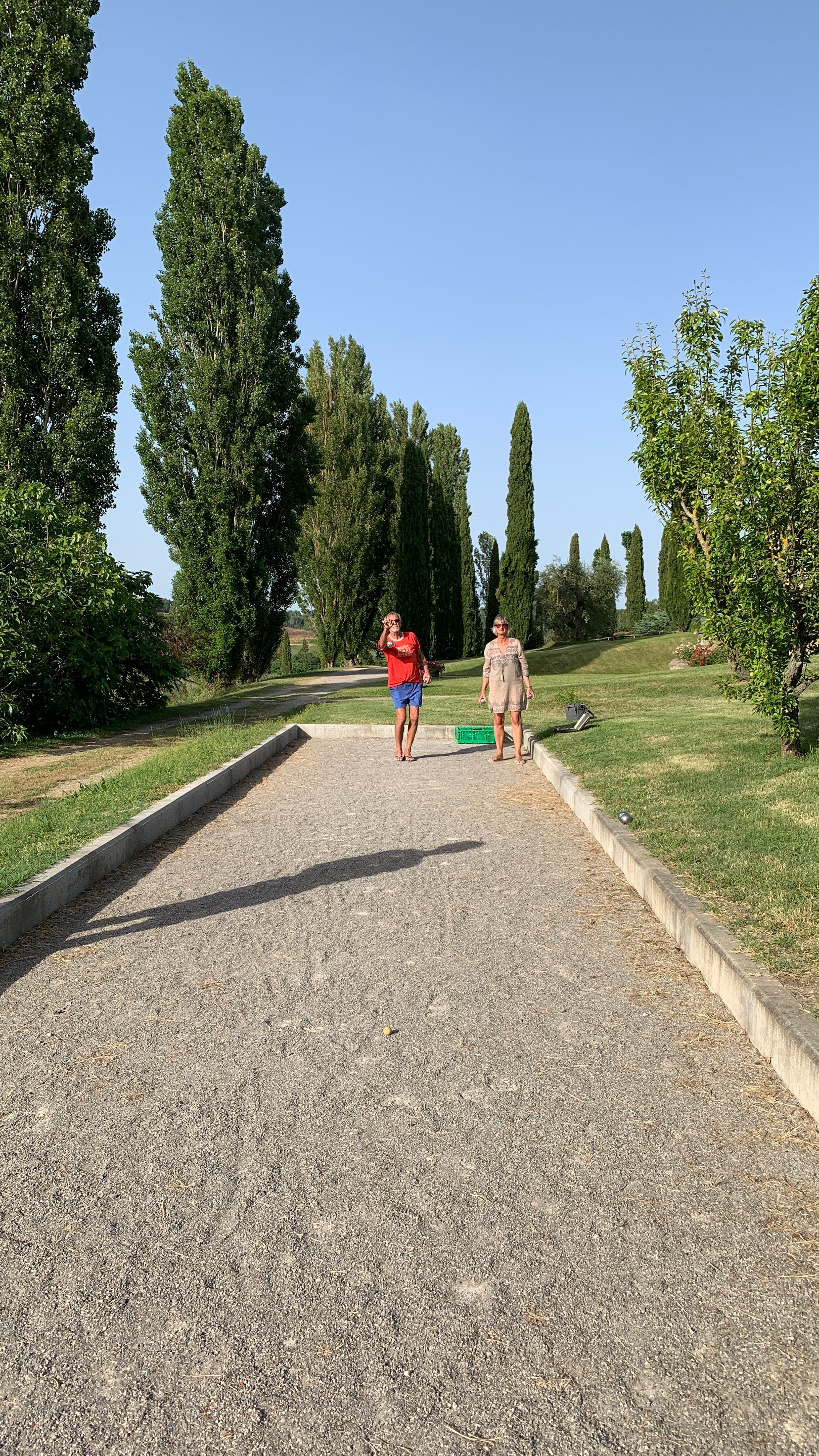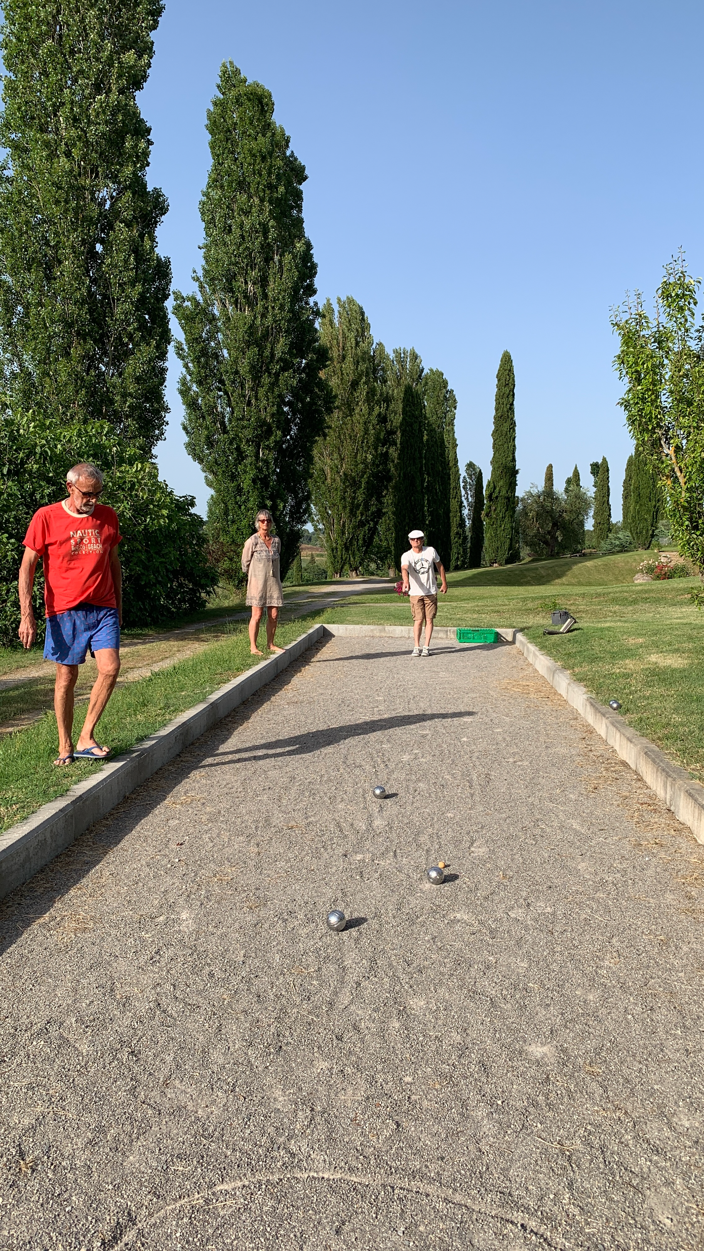 Après un grand plouf, un peu de sport avec une partie de pétanque, gagnée 2 - 0 par… les hommes, attention à la revanche !